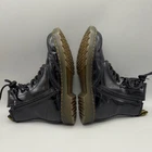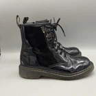 Dr Martens 1460 Y Boots Youth Size 5 Black Patent Leather Zip Lace Up Combat Lots of creasing on patent leather. Pre-owned Dr. Martens 1460 Y boots with noticeable creasing and light scuffing to black patent leather uppers, especially across the toes and sides. Soles show light wear and slight discoloration with tread still clearly defined; midsoles have a few small nicks. Interiors are clean with light lint; zippers, laces, and pull tabs are intact and functional with no tears or separation. Brand: Dr. Martens Item: 1460 Y youth combat boots Color/Pattern: Black patent leather uppers with black laces, black side zippers, yellow welt stitching, and translucent brown lug outsoles. Size on tag: US 5 (US M), US 6 (US L), UK 4, EU 37 Materials: Patent leather upper, textile lining, cushioned rubber sole. Country of origin: Made in Vietnam Design details: Classic 8-eye lace-up front, medial side zip closures for easy on/off, round toe, and low heel with air-cushioned sole construction. Branding/Logos: Dr. Martens heel pull tabs with yellow text, branded insole logo, signature yellow welt stitching, and embossed Air Cushion Sole branding on the outsole. Tags/Codes: Model 1460 Y; additional codes NJ004 and KM 07W. Notes: Youth-sized version of the iconic Dr. Martens 1460 boot silhouette, suitable for casual wear, school, and everyday outfits; please review all photos for full design details. 0862 All items are bagged and sealed after being photographed, then stored in a smoke free environment to ensure the item is exactly the same as when photographed. I carefully package and ship daily. Feel free to contact me with any questions.
