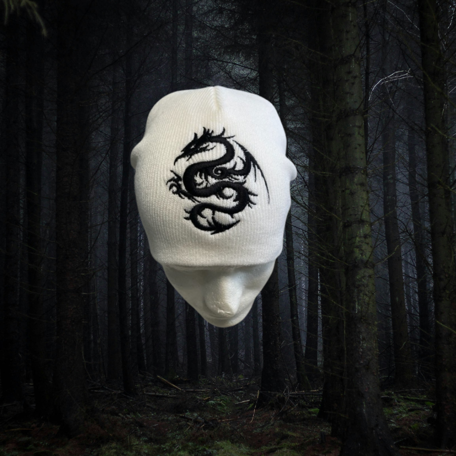 White Beanie Hat with Embroidered Dragon Design! Get ready to embrace your dark side with our embroidered beanie hat featuring a dragon design. This gothic-inspired accessory is perfect for those who love to add a touch of mystery and edge to their style. Made with high-quality materials, this hat not only looks cool but also keeps you warm during those chilly days. Whether you're a fan of gothic fashion or simply want to make a statement, our embroidered beanie hat is a must-have addition to your wardrobe. Features: Embroidered Dragon Design Material: 20% Acrylic 80% Polyester Size: One size fits most. Care Instructions: Machine Washable