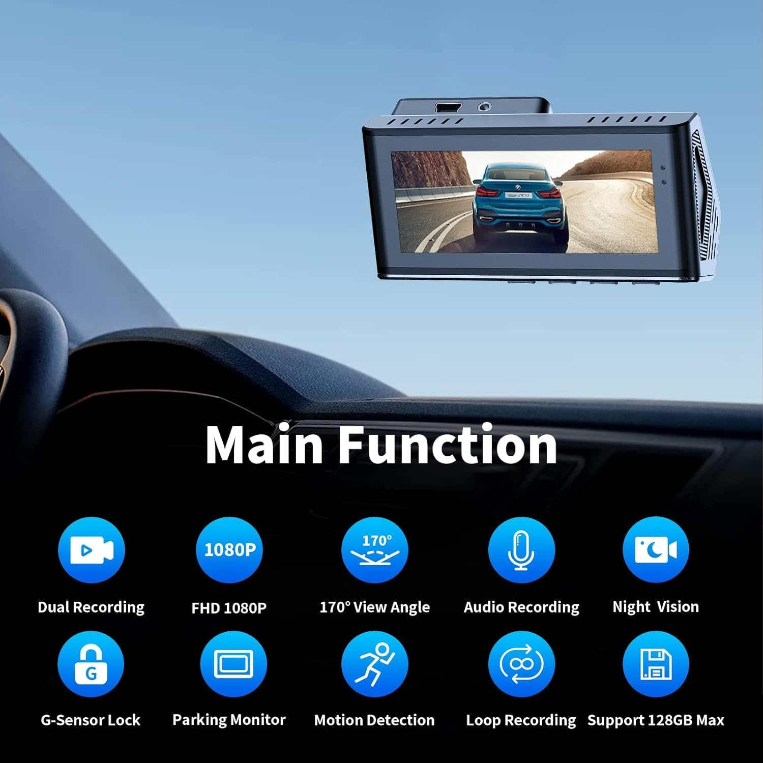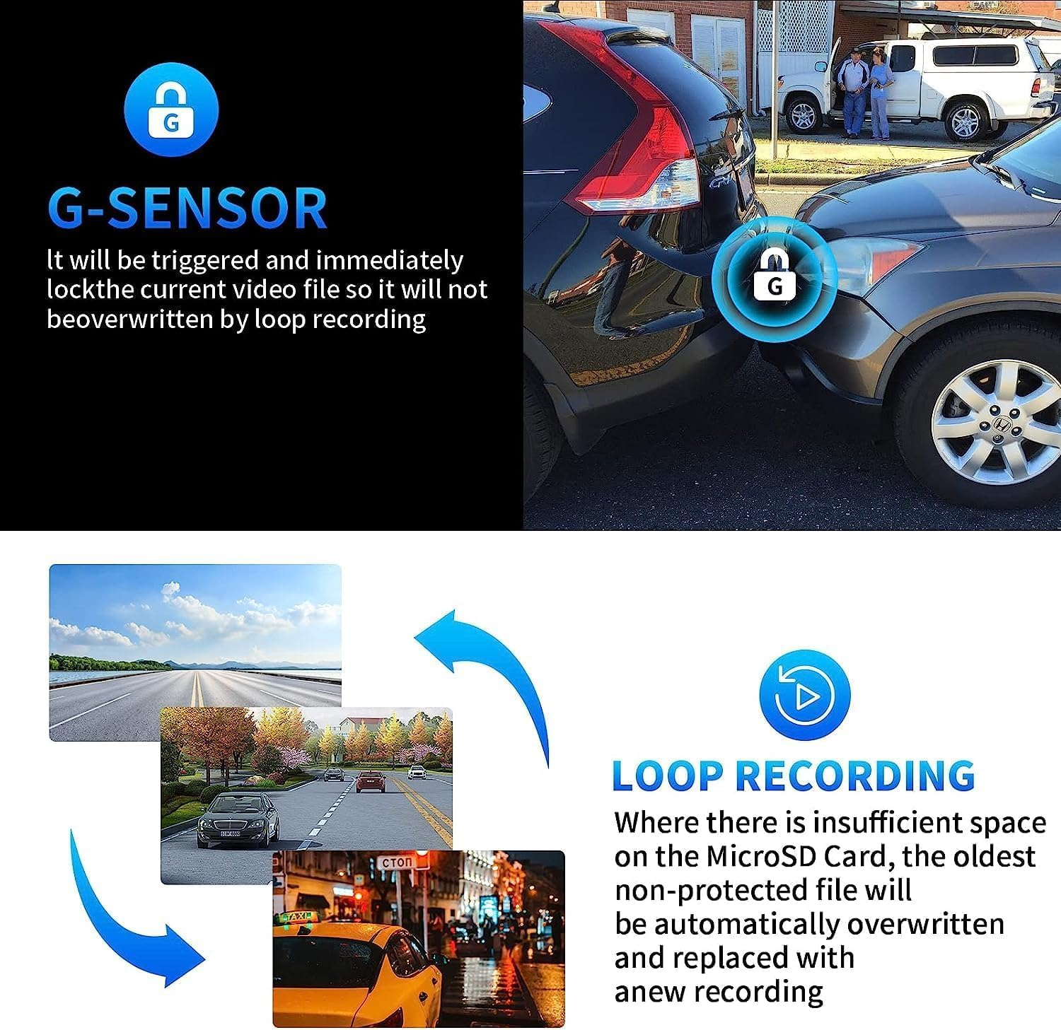 {1080P FHD LCD Screen & Dual Recording} Dash cam front and rear in 1080p FHD resolution, it’s equipped with 170 degree wide angle lens, help eliminate the blind spots of your vision and captures critical details,can also help you read key details such as road signs and vehicle license plates more clearly, bringing you better driving pleasure and better security. The 3.39 inch Large LCD screen allows you to monitor and play back key moments, providing reliable protection for your safe driving. [Loop Recording and Emergency Accident Locks] To assure indefinite loop recording, the oldest unlocked footage will be automatically erased when the memory card reaches its maximum storage capacity. Once the built-in emergency lock senses a collision, the dash cam will automatically lock the currently recording footage as evidence of an event. Loop Recording will not overwrite the locked files. {Super Night Vision and Screen saver} F2.0 aperture and a Starvis sensor, making it easy to obtain sharp, color-accurate images WDR technology for better color accuracy and clarity, which is a good helper for your night driving. When the screen saver is on, the screen auto turns off the screen backlight after a corresponding period of time when dash cam is not operating, but it is in a normal recording state, avoiding the problem of nighttime light reflection on the screen. {Parking Monitor Function} When the car engine and camera are both off, if the parking guard is on, the camera will automatically start recording when it detects vibration and collision, lock a video, and then automatically shut down. If a dash and cabin cam is required to protect your vehicle 24/7, an additional hardware kit needs to be installed. {Easy to install & Great After-Sales} This dash cam easy to install. Use 3M sticker stand, with the included electrostatic sticker, you can stick it anywhere you want without leaving any smudges. We offer 7*24 hours of technical support. Please contact us without hesitation if you have any questions. [Pruveeo Support] PRUVEEO dash cam is backed by full 18-MONTH Assurance .We offer 7*24 hours technical support.You can text us or email pruveeo support service and we will quick solutions.It can comes with a free replacement or Refund if the dash cam have any doubts. Product Description PRUVEEO L2-2CH DUAL DASH CAM PRUVEEO L2-2CH dash cam front and rear is Newest introduction Dash Cam in 2023,Constant Protection for Driving ! Hidden Mounted behind your windscreen, they record what’s happening around you while you drive.It comes with G-Sensor, parking monitor,auxiliary parking,motion detection and emergency collision detection Hopefully the a stunning vista while you’re on a road trip. They can also provide invaluable evidence in the event of an accident or insurance claim. 24H Parking Monitor - You need to purchase an ACC hardwire kit (search for B09SCPM4C4) with low battery voltage detection to leave it running when parked (not included). The dash cam works automatically. It starts recording when the engine is turned on and stops when it is turned off. The memory card is NOT included in the packaging. Max Supports a 128 GB Micro SD Card.class 10 or above. Please format the memory card on computer and on dash cam first before recording. The function of built in 150mAh battery is just for emergency recording and saving settings. Please keep the dashcam plugged in always, the dual dash cam will shut down after 5 seconds when there is no external power connection. The dashcams covers basic functions what you need for daily driving. It's a decent gift for family and friend. Warm tips: This L2-2CH dash cam due to the angle issue of the machine itself, is not suitable for your trucks. Truck drivers aren't advised to purchase it and can choose other models of Pruveeo dash cam.The dash cam is suitable for installation and use in cars, taxis, etc. New Model:J20-4CH Mirror Dash Cam,4 Channel Camera FHD 1080Px4, Front, Left, Right and Rear,please search for ASIN B0BY7TCZJ3 . New Model:J30 Mirror Dash Cam,3 Channel Camera 1440P+1080P+1080P Front Inside and Rear,please search for ASIN B0BL32YWTG. New Model:J12 9.66 inch Mirror Dash Cam,please search for ASIN B0CW64RWJ6 New Model : D90-4CH 4 Channel Camera FHD 1080Px4, Front, Left, Right and Rear ,please search for ASIN B0BJZQ37G7 Specification : · Screen : 3.39 inch LCD Display · Lens Angle: 170° Wide · Lens Aperture: F1.8 aperture · Video format: AVI · G-Sensor Lock : Supported · Internal Power: Built-in Li-ion Battery · External power supply : DC 5V/1.5A · Operating Temperature:14°F(-10°C)~170°F(75°C) · Storage : Micro SD Card 32GB-128GB (NOT included) What's in the Box? 1 x L2-2CH Dash Cam 1 x Rear Camera 1 x 3M Double-sided Sticker 1 x Car Charger 1 x User Manual Other necessary accessories Easy Installation front Dash cam Pruveeo L2-2CH Dash Cam perfectly sits by or behind your rear-view mirror ,discreet and hidden,Ultra-Compact,discreet and removabledesign,never blocks your view.with minimized distraction. The signature's low-profile design allows the dash cam to be a well-hidden witness to safe driving on the road ahead.(Warm tips:This dash cam due to the angle issue of the machine itself,is not suitable for installation and use on trucks, suitable for installation and use in cars, taxis, etc.) 3.39 Inch 1080P Full HD IPS Screen PRUVEEO dash camera Comes with 3.39 inches high definition screen and updated FHD 1080P resolution can be intuitive to watch all the things happening at any time and place, but also helps you clearly see every details when playing back and providing you the best visual experience. Dual Channel Dash Cam Front and Rear With 170° front and140° waterproof rear lens, allows a Wider and Crystal-clear view.the dash cam front and rear can provides greater security.You don't have to worry about the camera situation even in rainy or cloudy weather.Three display modes: front and rear, front only, rear only. Parking Moni