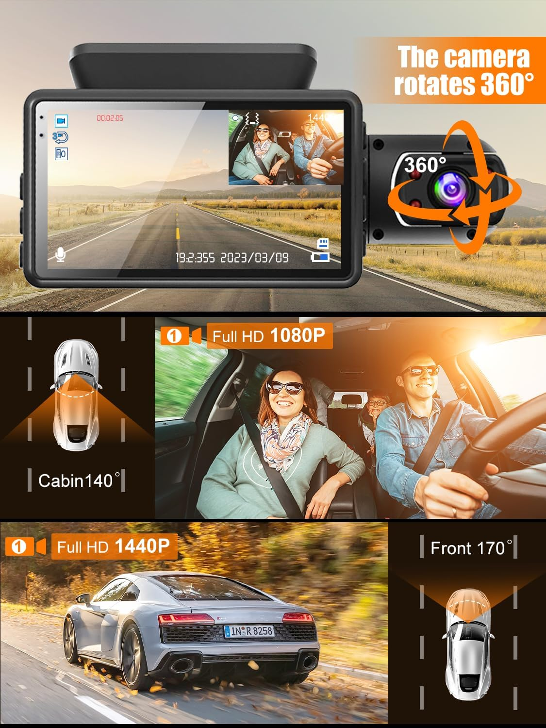 Store New Arrivals Add to Favorite View Feedback Contact Dash Cam Front and Inside, Dual Channel Dash Cam, 360 Dash Cam with 32G SD Card, 1440P +1080P Dash Camera for Cars, Cabin, Dashcam with 3"" LCD IR Night Vision Description 【3-Channel Rotating Dash Cams】- Keep a watchful eye on the inside and outside of your vehicle while enjoying audio features with our dash cam. The switchable 360° rotating lens captures the cabin, right side, or both with ease 【With 32GB SD card】This dash cam front and rear comes with a 32GB SD card and reader, making it ready-to-use. Its user-friendly design and plug-and-play installation process make it the perfect addition to your vehicle. Drive with confidence and stay protected with our dashcam 【Reliable Recording & Emergency Locks】Equipped with Loop Recording and G-Sensor capabilities, this dash cam provides continuous recording, saving collision video upon sensing sudden shocks, and offering 24-hour parking monitoring 【6 Infrared Night Vision for Safety】- Stay safe on the road with this 2-way dash cam. Equipped with high-performance Advanced Sensor and 6 IR LED lights, it captures clear and balanced video even in low-light. Use it as a dual dash cam to record both front and rear views simultaneously for complete coverage and protection. Get this reliable dash camera today and enjoy peace of mind while driving 【1440P Dash Cam & 3'' LCD Screen】- This dash camera records every detail on the road with its advanced technology. With up to 1440P and 1080P recording, the front and cabin car dashboard cameras provide an exceptional visual experience. A large 3'' screen allows you to easily view footage in real-time. Get this powerful dash camera as a front and rear solution to keep track of your driving activities Specifications: 📹Dual camera: 1440 Front Car Camera+ 1080P Cabin 360 Camera 📹Screen Display: 3" LCD Display Screen 📹G-Sensor: Off/On 📹Loop Recording: Built-in 📹Storage: Micro SD Card Up to 32GB 📹Comes with a 32G High-Speed Memory Card 📹Power Supply: DC 5V/2A 📹Video Resolution: Full 1440P Front Camera + 1080P Cabin 360 Camera How to Install: Attach our 360 Dash Cam to your car's windshield with the included suction cup and cable clips. To connect the car charger, run the wire inside the weatherstrip and headliners and then plug it into the cigarette lighter socket. Package Contents: 1× 360 Dual Dash Cam 1× Car Charger 1× 32G High-Speed SD Card 1× 3M Tap 1× Card Reader 1× User Manual Our 360 Dash Cam provides clear 360 video recording, quick and easy installation, and reliable power supply for your peace of mind on the road! ABOUT US Welcome to our Ebay store! FAST FREE SHIPPING ON ALL PRODUCTS! Please look through our selected quality items to see if you can find what you are looking for or to discover new and exciting things. Our main goal is to bring you the best services which includes quality products at the best prices, fast free shipping and great customer support ! SHIPPING We ship to the Lower 48 States only (Does NOT include Hawaii or Alaska) We cannot ship to PO Boxes/APO's We cannot combine shipping. No Local Pickup. NOTE: we ship from multiple locations We offer FREE STANDARD DELIVERY 2-8 business days within USA. The item will be shipped directly from our supplier. RETURNS We have a NO returns policy on this product , but we will make sure you receive it in perfect condition( in case of damage on arrival let us know within 2 days for a solution/replacement). PAYMENT We accept PayPal. CONTACT US This page content is yet to come Please ad us to your favorite seller and visit again later Thank You CUSTOMER SATISFACTION If you have a question about a product not otherwise answered in the item description, please contact us via eBay messages first and allow us the opportunity to help you. Your satisfaction is our #1 priority ! In any situation before opening a case please do contact us for a resolution!!