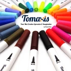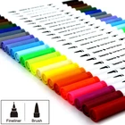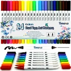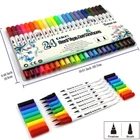 Spezification: ●Color List: 24 Colors ●Flexible Brush Tip: 1-2mm ●Finliner Tip : 0.4mm ●Usage: You could use the Brush Tip directly for coloring, it’s soft and very easy to use. Or with the Fineliner tip together: firstly sketch or draw the outline with fine tip and then with the Jumbo tip, and finish your work with one marker. Notes : If you are coloring on thin paper,you can put an extra sheet of blank paper between your coloring sheets and that works nicely to prevent any bleed thru.Just In Case. ●Notice:The ink is water based, thus not water proof. Please keep your works away from water or rain, and recap the pen after use, in case of drying. ●Safe: Acid-free and Non-toxic Water-based Ink, conforms to ASTM D-4236. ●Space - saving packaging is convenient and easy taking. Perfect for Rendering, Art Caligraphy Design, Animation Design. Package Included: ●Set of 24 Colors Water-based Dual Tip Brush Marker Pens ●Dual Tips: Fineliner tip for outlining and detail, Brush tip for shading & coloring; Soft Brush which flexible enough and ink dry fast when you are coloring. ●Distinct Colors : 24 frequently-used variety of vibrant colors, Perfect for Lettering, Calligraphy, School Planner, Bullet Journal Lines, Sketch Book, Bible Notes, Extra fine line, Calendar.etc. Compact Coloured Pens Set for kids, adults, beginners ●High Quality : All brushes and fineliners are fill with Odor-less. Acid-Free& Non-Toxic Non-bleed Water-based ink, Skin-Friendly, Conforms to ASTM D-4236, safe for kids; No trouble with smudging or bleeding through.No skipping or ink flow issue, no more struggling with hard, inflexible pens that take all the fun out of coloring. ●Space - Conservative Packaging : Nice plastic storage case with fold over snap closure which can be easily placed in backpacks. Space - conservative & Portable. ●This Dual Tip Brush Colouring Marker Pens allows you write in both thin and thick lines, providing great versatility and flexibility allowing you to create various styles, sketches and patterns with ease Easy coloring for Drawing Lines & Details, Painting, Sketching etc.For your max Creative Expression & Imagination