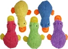 Great for fetch and play Larger toy, but great for all sized pets Squeaker and plush filled Pets should be supervised while playing with toys and all damaged toys should be discarded Assorted colors. You will receive one item. Included Components: Polyfiber Plush Filling Note: plush toy not designed for aggressive play Multipet duckwoth is a 15-inch plush filled shaggy duck. He is a soft fluffy dog toy that squeaks when played with. Larger size is ideal for large breeds or small breeds who "think" They are big! Assorted colors. Customers will receive one item.
