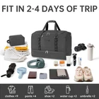 【Large Capacity & Lightweight】The duffle bag is 20.8 x 9 x 13.5 inches, the capacity is about 42L can fit in 2-4 days short trip of daily essentials. The travel bag made of high-quality water-resistant fabric and lightweight. Weighs only 1.8 lbs, convenient for travel and carrying. 【Dry and Wet Separation】The gym bag with a zippered waterproof PVC lined pocket for wet clothes or towels and bathing suit, it can effectively keep the bag clean and not get wet. And the toiletry bag can put in your toiletries, cosmetics, and razors etc. Easy to and organized. 【Separate Shoes Compartment】The weekender bag has a independent shoe cabin, which can accommodate 2 pairs of men shoes or dirty clothes and the air vents to disperse the bad smell. It can help you avoid dirtying other clothes when packing, also provide more convenience for your travel. 【Travel-Friendly Design】The carry on bag is perfectly align with the flight regulations and carry-on requirements of major airlines. It can be placed aircraft overhead cabin and under the seat for easy accessibility, and the back sleeve allow you to be attached to the suitcase, release your hands. 【Versatile Overnight Bag】Whether you're heading to the gym, planning a weekend getaway, or going on a business trip, is ideal for a variety of purposes. This multipurpose bag can be used as a gym bag, carry-on for flights, sports bag, overnight weekender bag, hospital bag, or a stylish beach companion.