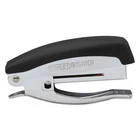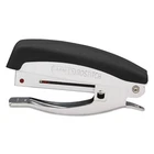 Product Page Durable All Metal Black Stapler with Chrome Finish and Rubber Comfort Grip Description: Designed to mold perfectly to your hand, this Deluxe Hand-Held Stapler is designed for frequent stapling applications or as the ideal stapler to mount in a communal use environment. With an all metal construction for durability and performance, it will easily and consistently staple up to 20 sheets. The elegant chrome finish is both attractive and durable, ideal for public mounting in retail environments. Topped off with a soft rubber top cap for non-slip comfort and ease of use. So you are never caught by surprise, the staple reload window alerts you when it’s time to load more staples. The integrated anchor hole allows you to secure the heavy-duty hand-held stapler to a desk or countertop so it is never misplaced in communal use environment (mounting kit not included). Features: Durable all metal construction with elegant chrome finish Soft rubber top cap for added stapling comfort Convenient visual staple reload alert Anchor hole for securing to a desk or countertop Loads half strip of standard staples