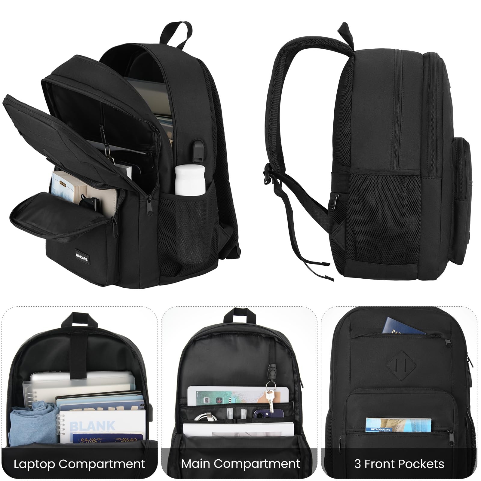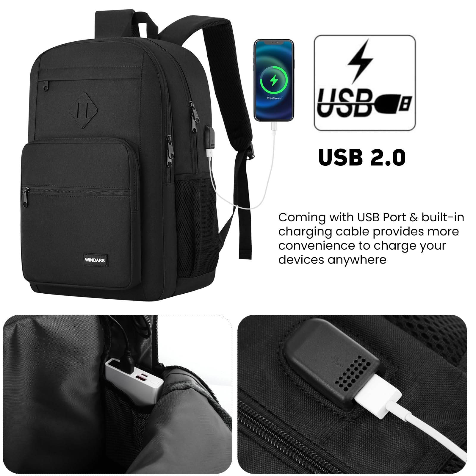 HIGH QUALITY DETAILS WATER RESISTANT MATERIAL Made of high quality water resistant lightweight Polyester. Protect your laptop safely. SMOOTH ZIPPERS Metal pulls on the zipper are for easy zipping and unzipping which allow the casual backpack to slide easily and smoothly. USB PORT Lightweight Casual Laptop Backpack with charging port offer a quick access to charge your phone or other Electronic devices such as Kindle devices and all USB devices conveniently. COMFORTABLE DESIGN Breathable design with soft foam padding on the back and shoulder straps, when worn, it rests comfortably on your back. Feature Capacity: 28L Size: 17.8 x 12.6 x 7.3 in Durable, Lightweight, Water repellent Hidden Back Pocket: Passport, cellphone, wallet, personal items. Elasticized Mesh Pockets: fit water bottle, umbrella or other items. Separate Padded Laptop Sleeve: Fits up to 16 inch, 15.6 inch, 15 inch, 14 inch, 13.3 inch Laptops and Macbook. Outside: 2 zipper pockets fit in your phone, charger, calculator, wallet or any other equipment. It is clutter-free way to hold your small devices. Key Fob Hook: Unique Key Ring design, organize your key well and let you find out your key in all sorts of things easier. Luggage Strap: The luggage strap makes the backpack for school slide over luggage handle tube, free your hand and lower your shoulder stress. Large capacity backpack for multipurpose With large capacity features, our backpack could be used as school backpack, work backpack, travel backpack. An ideal gift in casual design, perfect for men, women, boys and girls in different ages. For School - Best choice for BACK TO SCHOOL Supplies. It can serve as a backpack for college students, school backpack for boys and girls, middle school bag for teens. With a lot of pockets, makes your school stuff organized perfectly. For Travel - Perfect for weekend short trip getaways, airplane travel, outdoor hiking and camping. With anti theft pocket and USB charging, will be a good travel backpack for boy and women. For Business - Suitable for business trip, this is the best one as computer backpack for women and men, laptop backpack for men, backpack for men work bag, backpack with charger. 【LOT OF STORAGE & WATERPROOF】 17.8 X 12.6 X 7.3 Inch. 28L. Made of high quality waterproof oxford 300D fabric, wearing-resisting. Three spacious compartment and various independent pockets organize your stuff very well, such as college supplies, travel accessories, books, clothes, camera, iPad, bottle, umbrella and key. Moreover, the main compartment is with padded Laptop pocket, which can hold up to 15.6 inch laptops. Suitable for school/daily life/work/trip/traveling. 【MULTI FUNCTIONAL】Metal Zipper allows it to slide easily and smoothly. Key Ring design, organize your key well and let you find out your key in all sorts of things easier, plenty of pencil pouches for school supplies. Hidden anti-theft pocket protect your valuables from stealing. 【ERGONOMICS & LUGGAGE STRAP】Comfortable airflow back design with thick and soft breathable padding gives you maximum back support. Adjustable shoulder straps can prevent them from slipping, and make the laptop backpack fit your body shape and shoulders better. A luggage strap allows the back pack fit on luggage/suitcase, slide over the luggage upright handle tube for easier carrying. 【USB CHARGE PORT】With built in charging cable inside, this USB backpack offers you a more convenient way to charge your phone while walking. Please noted that the power bank is not included, usb charging port only offers an easy access to charge. 【GIFT WARP AVAILABLE】 Among school backpacks for teenagers, the classic shape is the most popular for student. Of course, it can also be used as a casual backpack and work backpack. To prepare a wonderful gift for friends or family, the book bag is a good decision. (Age: over 3 years old)