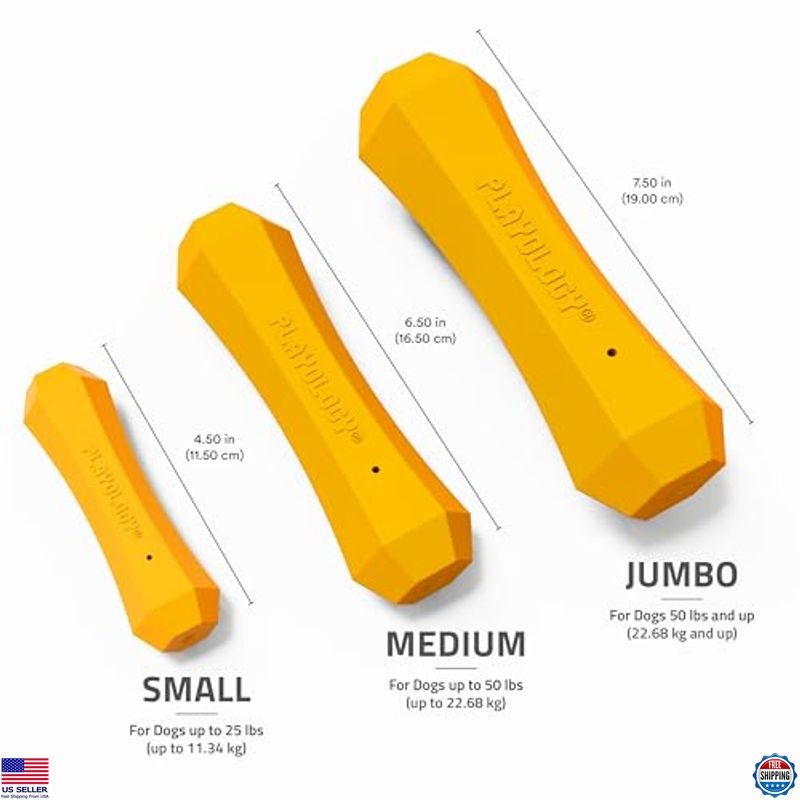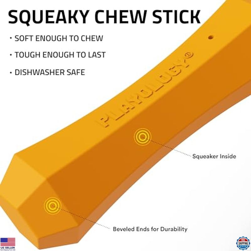 Playology Squeaky Dog Toy Fetch Stick | Durable Rubber Toys for Interactive Play | Cheddar Cheese Scented Fetch Stick for Large Dogs | Floating Dog Toy Made from Non Toxic Materials Description Elevate your pup's playtime with Playology's Squeaky Chew Ball, designed to keep dogs engaged and entertained! Infused with irresistible all-natural scents like beef and chicken through our patented Encapsiscent Technology, this felt-free ball encourages extended chewing and makes fetch even more exciting. Perfect for dogs of all life stages, this toy promises endless sniff-tastic fun! Product reference: B08GQDFQLH. Features Playology's Squeaky Chew Stick: This Jumbo squeaky stick for dogs features a fun squeak to catch your dog's attention and keep them entertained 7x longer than unscented toys. Toys for Big Dogs: This rubber dog toy is ideal for large to x-large breeds (50 lbs+). Durable enough to withstand play indoors and outdoors, this Large dog stick is an essential item to entertain your K9 companion. Engaging All Natural Scents: Our patented Encapsiscent Technology embeds all-natural scent at the microscopic level which results in a long-lasting scent your dog will love. These scented dog toys have been scientifically tested and are a calorie-free treat to play with! Floating Dog Toys for Water Fetch: Perfect for pools, ponds, lakes, and beach days—this interactive dog toy floats, making it a go-to choice for dog pool toys. Playology fetch sticks are an exceptionally better option than traditional sticks because they don't splinter. Easy To Clean & Non Toxic Dog Toys: Crafted from durable, non-toxic materials and tested to child toy safety standards, you can trust this toy by Playology for your pet. And they're easy to clean! Simply rinse this dog ball toy with warm water to clean— the scent is in the rubber, so it won't wash away. Designed by Animal Lovers: Everyone at Playology is committed to designing and developing the best dog toys and pet supplies for dogs we can so that you and your dog will love playtime. Happiness Guaranteed: At Playology, we're more than just cool dog toys; we're about making tails wag and ending the toy graveyard blues. So, if you encounter any issues or if your furry friend isn't overjoyed with our pet toys for any reason, let us know and we'll make it right. Your dog's happiness is our guarantee! Shipping Free & Fast Shipping: We offer free shipping to most of the USA with a normal delivery time of 3-7 days. However, due to the current situation, additional delivery time (up to 3 weeks) may be required for some items. Alternative Carriers: We may use alternative carriers (e.g., USPS, FedEx, UPS) to ensure your package arrives safely and on time. Due to the use of multiple carriers, we are unable to provide a tracking number automatically. Handling Time: Orders are processed and shipped within 1-2 business days of receiving cleared payment. Shipping Restrictions: Shipping to Alaska, Hawaii, Puerto Rico, Guam, and other US territories may incur shipping charges or delivery restrictions. Please contact us before ordering, or your order can be refunded/cancelled. State Restrictions: Certain items may not be shipped to California due to state regulations. Contact for Tracking Updates: If you require tracking updates or have any concerns about the delivery of your order, please feel free to contact us, and we will be happy to assist you. Return Policy 30-Day Hassle-Free Returns: If you are not completely satisfied with your purchase, you can return the item for free within 30 days of receiving it for a full refund or exchange. Easy Return Process: Co...