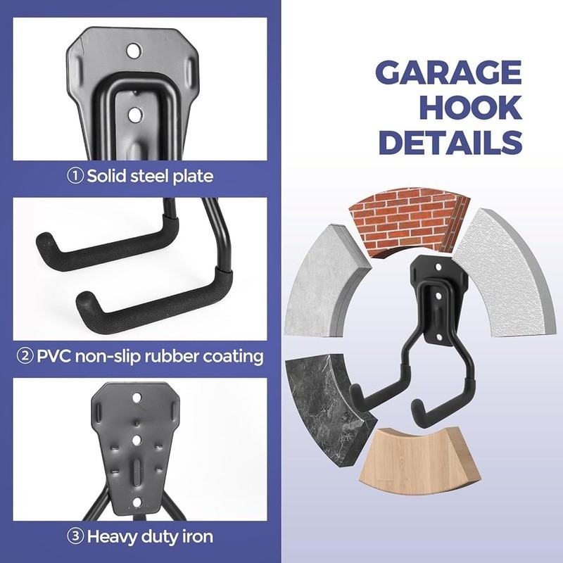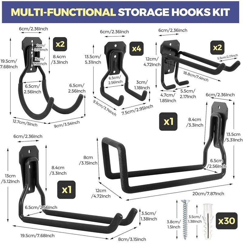 You may also like 8.9''Steak Mallet Meat Tenderizer Hammer Dual-Sided Heavy Duty Meat Pounder Tool 12.82 USD Free shipping 14"Professional Stainless Steel Food Pizza Cutter Rocker Ultra Sharp Pizza Knife 12.88 USD Free shipping 10 Pcs Measuring Cups and Measuring Spoons Set Stainless Steel Measure Cup Set 17.82 USD 19.16 USD Free shipping 7% off Bacon Wizard Microwave Crispy Bacon Maker - Crispier Healthier and Quicker! 15.72 USD 16.9 USD Free shipping 7% off 200PCS Assorted Crush Copper Gasket Seal Ring Hardware Set Metal Flat Washer 15.27 USD 16.42 USD Free shipping 7% off Cheese Slicer Cutter Board Stainless Steel Wire Cutting Hand Tool w/Size Scale 18.87 USD 20.29 USD Free shipping 7% off US Potato Fries Cutter One Step French Fry Vegetable Fruit Slicer Kitchen Tools 13.17 USD 14.16 USD Free shipping 7% off 100Pcs Cable Clips Self-Adhesive Cord Management Wire Holder Organizer Clamp 12.56 USD 13.5 USD Free shipping 7% off Ratchet Pipe Cutter for 8-29mm Pipes - Cuts Stainless Steel, Copper, Aluminum 18.66 USD 20.06 USD Free shipping 7% off Grip Strengthener Kit Hand Exerciser Finger Training Stress Relief Ball Workout 15.79 USD 16.98 USD Free shipping 7% off Sneaker Stain Eraser Kit - Detergent Cleaner for Suede, Leather, and Rubber Shoe 11.52 USD Free shipping Wooden Handle Stainless Steel Measuring Cups OR Spoons Baking Tools Coffee 14.45 USD 15.54 USD Free shipping 7% off About this item The Unbreakable Hero--In a regular ol' garage, there's this guy named Jack, who's a real enthusiast. He's always been plagued by the issue of tools scattered all over the place, never able to find the one he needs. Until one day, he crosses paths with the garage hooks heroes – made from specially reinforced metal, they hang tough like indestructible superheroes, neatly holding up Jack's tools and bringing him some much-needed organization and convenience. The Slip-Free Adventure--This garage is like a challenge zone, slippery and risky at every turn. But you know what? One day, this adventurer named Lily rolls in. She spots those PVC anti-slip covers on the wall hooks and immediately realizes they're the ticket to her safety journey. Without a second thought, she hangs up her gear, sets up her adventure securely, and off she goes on her thrilling expedition. The Perfect Fit--John had always dreamt of a nice and tidy garage, but he was always baffled by the idea of installing tools. Then, one day, he stumbled upon the miracle of garage organization. He was amazed to discover that these hooks not only came with straightforward installation parts but also made the whole setup process a breeze. He got right into it, and within just a few minutes, his garage transformed into a neat and orderly space, bringing his dream of many years to life. The Quick Fix--In a cluttered garage, Sarah was on a mission to find the right ladder hooks to tidy up her stuff. She was at a loss with all sorts of hook sizes, until she came across the perfect package of garden tool organizer. This set of 30 high-quality hooks offered a variety of sizes that perfectly catered to all of Sarah's needs. She finally found the garage organizer she had been looking for, making her garage beautifully organized and in tip-top shape. The Moving Gift--Anna and Peter are a soon-to-be-moving couple. Their friends wanted to get them a practical housewarming gift, but they were stumped on what to choose. Suddenly, they laid eyes on garage hooks, thinking about the brand new garage space they'd soon have. It would be the ultimate housewarming present, helping them quickly organize their garage and kickstart the first step of their new life. Color: Black Brand: Finish Type: Polished Mounting Type: Wall Mount Style: Stylish 4-Tier Corner Storage Shelf Compact Display Bookcase Home Office Organization US 59.89 USD 64.4 USD Free shipping 7% off Portable Blender 16oz Rechargeable Stainless Steel Blender USB-C Dishwasher Safe 44.23 USD 47.56 USD Free shipping 7% off Clear Plastic Utility Storage Organizer Bin W/ Handles Office & Home Use 9.88 USD 10.4 USD Free shipping 5% off Versatile Floor Cleaning Tool Brushless Design Non-Marking Blades Corner Brushes 57.71 USD 62.05 USD Free shipping 7% off Durable Pocket Hole Jig Kit W/ Adjustable Depth & Precision Drill Bit Set New 66.15 USD 71.13 USD Free shipping 7% off Full Motion TV Wall Mount 26-55 inch Articulating Swivel Tilt VESA 400x400mm New 36.45 USD 39.19 USD Free shipping 7% off Silicone Loaf Pan Non Stick Baking Mold Easy Release Food Grade Multi-functional 22.3 USD 23.98 USD Free shipping 7% off Industrial Pipe Table Frame Kit Authentic Iron Pipes DIY Vintage Home Aesthetic 127.87 USD 137.49 USD Free shipping 7% off Water Resistant Tool Box Metal Latches Anti Rust V Groove 95lbs Load Capacity US 49.97 USD 53.73 USD Free shipping 7% off Beef Burger Cheddar Cheese Dog Food 36 Pouches Dry Kibble Balanced Nutrition New 29.22 USD 31.42 USD Free shipping 7% off Space Saving Nonstick Cookware Set Dishwasher Safe Induction Oven Safe Durable 81.37 USD 87.49 USD Free shipping 7% off Durable Non-Slip EVA Foam Exercise Mat 6 Tiles 24 Square Feet Compact Storage US 44.52 USD 47.87 USD Free shipping 7% off