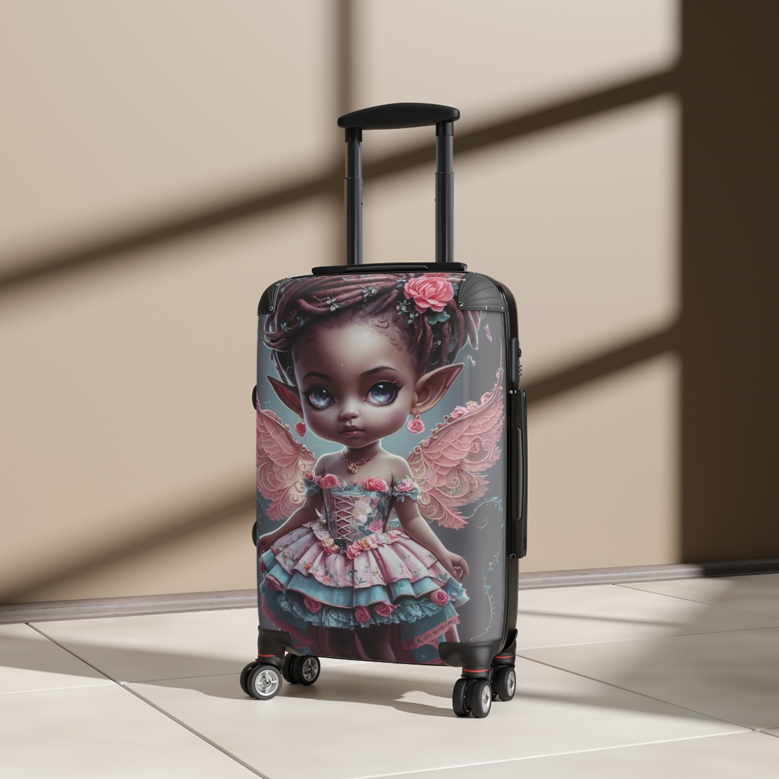 Traveling is best done in style, and suitcases help anyone do exactly that. Available in multiple sizes to accommodate your needs, they come with an adjustable handle, 360-degree swivel wheels, a safety lock, and an adjustable handle for carefree movement through airports and cities. To achieve high-resolution designs, prints go on a canvas surface that is encapsulated in the PC shell. Please note: Your design is printed on a canvas that may slightly crease near the suitcase's edges. .: Material: polycarbonate front and ABS back hard-shell .: Adjustable telescopic handle .: Removable inner lining under a black rubber seal .: Two inner pockets .: Four double-wheels with 360° swivel .: Built-in lock