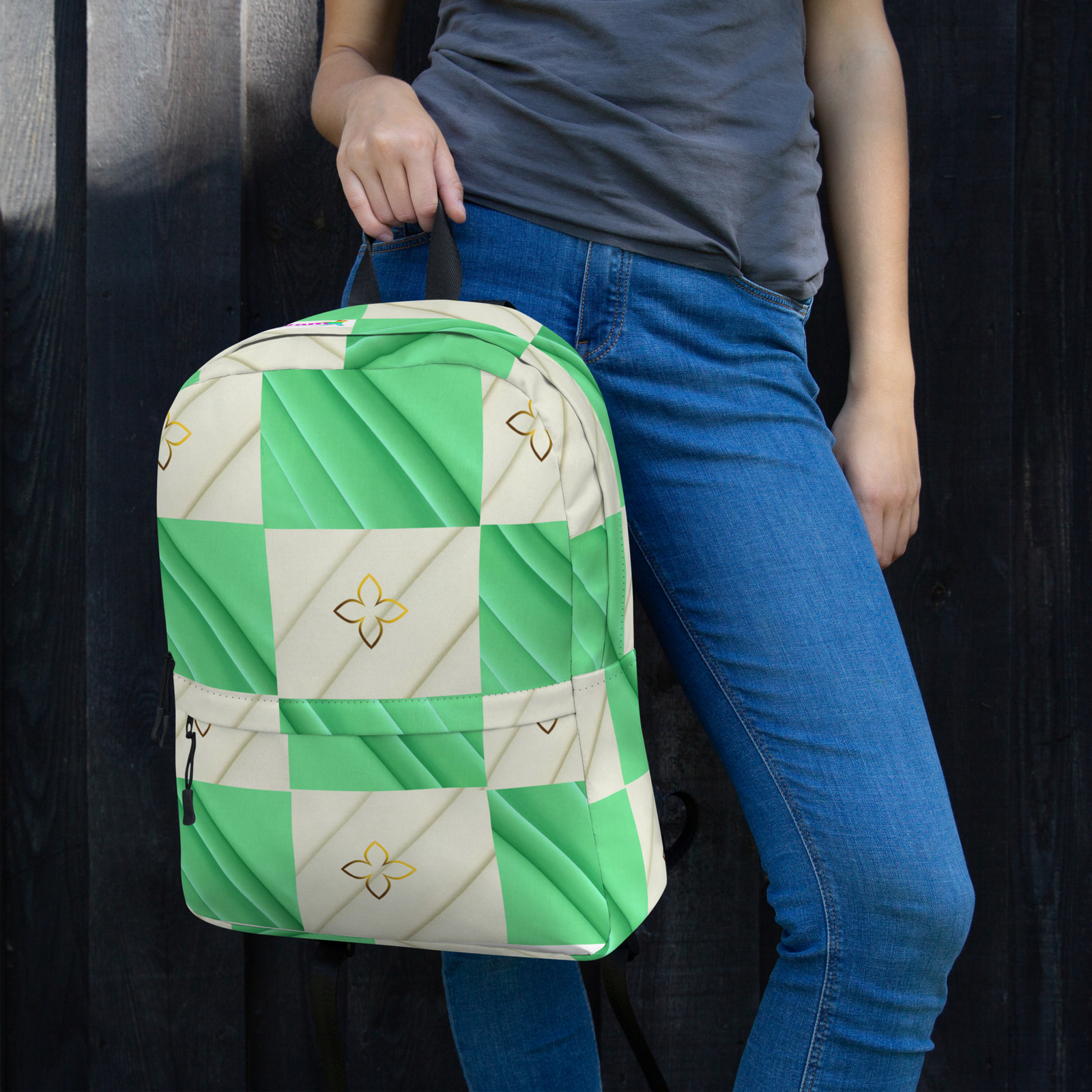 Cute Aesthetic Backpack for Girls. Backpack for High School, College, Office, or any other purpose. It is designed for comfort. It has a spacious inside compartment (with a pocket for your laptop), and a hidden back pocket for safekeeping your most valuable items. • Made from 100% polyester • Dimensions: H 16⅞" (42cm), W 12¼" (31cm), D 3⅞" (10cm) • 9.56 oz/yd² (325 g/m²), weight may vary by 5% • Maximum weight limit: 44lbs (20kg) • Water-resistant material • Large inside pocket with a separate compartment for a 15” laptop, front pocket with a zipper, and a hidden pocket with zipper on the back of the bag • Top zipper has 2 sliders with zipper pullers • Silky lining, piped inside hems, and a soft mesh back • Padded ergonomic bag straps from polyester with plastic strap regulators