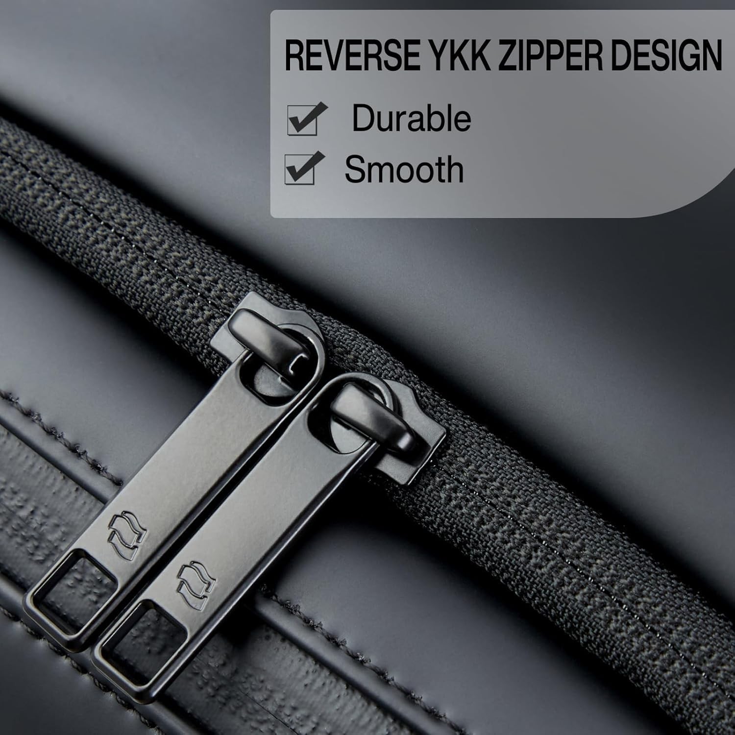Carry on Backpack Travel Laptop Backpack for Men & Women, Durable Rucksack Weekender Bag Daypack(Graphite Black) 【TRAVEL LOCKS FRIENDLY】180° padded computer compartment fits up to 15.6'' laptop, and the travel backpack can be freely unfolded 90-180 degrees, allowing you to quickly pass through airport security and keep things tidy. 【MULTIFUCTIONAL BACKPACK】Roomy business backpack (11.8"L×5.5"W×17.3"H) with shockproof iPad,laptop compartment,holds up to most 15.6 inch Laptop/MacBook/NoteBook. One spacious front packing compartment roomy for your phone, books, clothes,folders, power bank, pen,wallet and other items. Top zip pocket and flap over pocket for quickly accessing the small essentials. 【REVERSE ZIPPER DESIGN】The backpack feature with famous zipper, which is smooth and durable. The reverse zipper design improves the tightness, then it is not easy for liquid to seep in and also prevent external forces from prying. 【ERGONOMIC DESIGN】The thickened back panel and S-shaped shoulder filled with rich honeycomb sponges, offering ultra comfy and a good ventilation system. Invisible shoulder card slot help to place any cards. 【ELASTIC LUGGAGE STRAP】This business backpack come with an elastic luggage strap that allow backpack slide over the luggage tube. It relieves all the strain of carrying a heavy backpack bag while traveling.