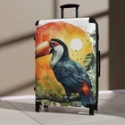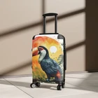 Traveling is best done in style, and suitcases help anyone do exactly that. Available in multiple sizes to accommodate your needs, they come with an adjustable handle, 360-degree swivel wheels, a safety lock, and an adjustable handle for carefree movement through airports and cities. To achieve high-resolution designs, prints go on a canvas surface that is encapsulated in the PC shell. Please note: Your design is printed on a canvas that may slightly crease near the suitcase's edges. .: Material: polycarbonate front and ABS back hard-shell .: Adjustable telescopic handle .: Removable inner lining under a black rubber seal .: Two inner pockets .: Four double-wheels with 360° swivel .: Built-in lock