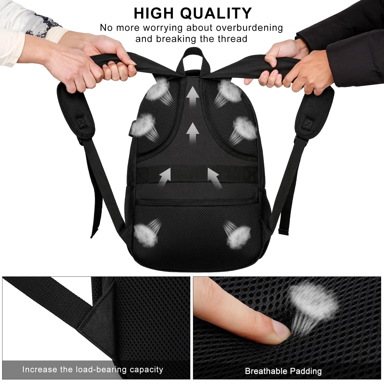 Black School Backpack Specifications: DIMENSION: 17.7”H x 12.2”L x 7”W Weight: 1.5 lb Shoulder Strap Length: Up to 45". Material: Oxford + Sponge + Metal Zipper This 15.6 inch school college backpack could be used for travel accessories and laptop accessories, business trip, work. Backpack for men women built from Exquisite gold-plated zippers, comfortable top handle, Simple oxford exterior material with a fully lined tear-resistant custom printed polyester interior. USB Charging Port Design: With an External USB charging port; set-in charging cable, this USB laptop bag offers you a more convenient way to charge your phone while on the go. (Power bank NOT included). Multi-function Backpack: Backpack for men have retractable pockets on both sides, which are specially designed for small items. You can put small items such as water cups, umbrellas, etc., simple and convenient The trolley strap design can be hung, and the trolley case can be easily hung when traveling, highlighting the practical design of the backpack. Hidden zipper pocket on the back for easy carrying Travel laptop backpack is a perfect companion for travel, business, daily use and outdoor activities. Practical gifts for friends, mothers, fathers, her or him. Large Capacity: Black backpack size : 17.7in x 12.2in x 7in, 30L. The large school backpack has 4 large compartments and 2 side pockets - 1 padded laptop compartment that can hold 15.6 inches. A spacious main compartment, with multiple pockets, pen bags and compartments for small items in front, makes your items in good order and easier to find. USB Charging Port : With an external USB charging port and built-in a charging cable inside, and there is a special pocket inside the laptop backpack to place the power bank (Note: power bank is not included), providing you with a more convenient way to use your mobile phone while walking or traveling. Laptop Backpack makes your trip and travel more convenient wherever you go. Anti-Theft Pockets & Luggage Strap: This work travel backpack for men has an embeddable luggage strap that slides easily over your luggage/suitcase handle to relieve your back and shoulder pressure during use. The hidden anti-theft pocket on the back of the backpack for men can protect your smart phone, wallet, passport, other valuables from being lost for all basic daily needs for college, work, travel, hiking, business trips. Ergonomic & Water proof Fabric: Comfortable airflow back design, made of highly elastic breathable sponge and honeycomb shock-absorbing fabric, thick and soft, heat dissipation fast. Widened, adjustable shoulder straps reduce weight and protect your back and shoulders. High-density polyester waterproof oxford cloth keeps your belongings from getting wet. Stylish Back Pack for All Occasions: This is a sturdy computer daypack, ideal gift for grandson, son, friends, lover, teachers, students, boys, girls, mens, womens. A great choice for office work backpack, travel backpack for men, school bookbag for boys, college backpack, daily use basic backpack, nurse backpack, teachers backpack, all indoor and outdoor activities. Age: over 3 years old