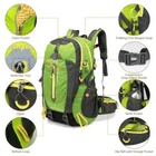 Features: Water repellent and tear resistant nylon fabric. High quality zippers, easy zip and unzip. Two sides mesh pocket for water bottle or other accessories. Breathable and padded back panel. Adjustable sternum strap and shoulder strap. Survival whistle for emergency. Side and front adjustable straps for hanging trekking pole, tripod or anything you need. Bartack stitching reinforcement. Waist pack for cell phone, keys, small accessories. Alpenstock clasp and tent/sleeping bag straps. Adjustable waist and chest strap. D-ring for small accessories. Specification: Material: Nylon Color: Green / Dark Blue / Black / Orange (Optional) Capacity: 40L (all 6 pockets) Weight: Approx. 600g / 1.32lb Size: 52 * 33 * 20cm / 20.5 * 13 * 7.9in Package Size: 52cm * 33 * 3cm / 20.5 * 13 * 1.2in Package Weight: 610g / 1.3lb Package List: 1 * Backpack