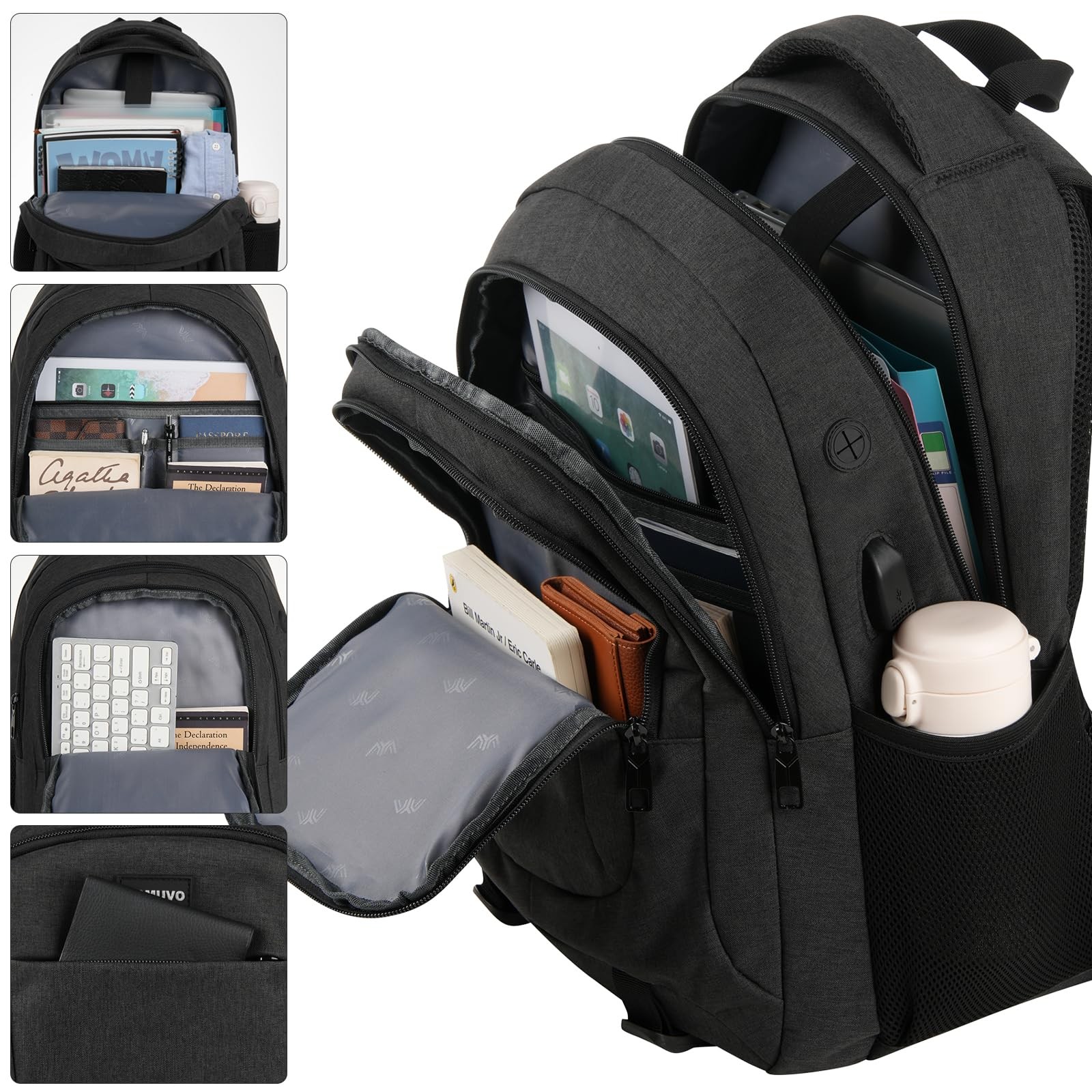 【LARGE CAPACITY & WATERPROOF】18 X 12.5 X 7.5 Inch.35L. The travel business backpack is made of high density waterproof polyester. Three spacious compartment and various independent pockets organize your stuff very well. One separate laptop compartment hold 15.6 Inch Laptop as well as 15 Inch,14 Inch and 13 Inch Laptop. One spacious packing compartment roomy for college supplies,travel accessories,books,clothes,bottle,umbrella and key. 【ERGONOMICS & COMFORT】Comfortable airflow back design with thick and soft breathable padding gives you maximum back support. Breathable and adjustable "S" shoulder straps relieve the stress of the shoulders, Foam padded top handle for a long time carry on. All ergonomic functions ensure comfortable and safe everyday & long-lasting travelling usage. 【USB PORT & HEADPHONE JACK】Built in USB charger outside and built in charging cable inside, offers great convenience to charge your phone while walking, via the headphone interface, you can listen to your favorite music on the go hands-free. (powerbank is not in packaged) 【FUNCTIONAL BACKPACK】Zipper with the metal matte pulls slides easily and smoothly. A luggage strap allows backpack fit on luggage/suitcase, slide over the luggage upright handle tube for easier carrying. With a hidden anti theft pocket on the back protect your valuable items from thieves. Well made for international airplane travel and day trip as a travel gift for men. 【GIFT WARP AVAILABLE】Stylish appearance is the most popular school supplies for student. Of course, it can also be used as a daily backpack and business backpack. Suitable for daily life/business/trip/school. To prepare a wonderful gift for friends or family, our school bag is a good decision.(age:over 3 years old)