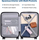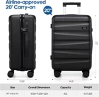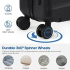Airline approved Luggage : With dimensions of 22x14.5x9.25inches (wheel and handle height included), the 20-inch carry-on luggage is perfectly sized to fit in the overhead bins of nearly every airline worldwide. No more extra fees for checked baggage—this lightweight, durable carry-on suitcase ensures a smooth, hassle-free travel experience, whether you're flying for business or leisure. Easy to Maneuver : Silent Dual Spinner wheels rotate 360°, providing superior maneuverability and a smooth glide in every direction. Thanks to the smooth-rolling wheels of suitcase, even when fully loaded, it's a breeze to maneuver through crowded airports and busy streets without feeling fatigued or strained. TSA Lock and Alloy Zipper :The Built-in TSA lock does not have to be forced open and damaged during inspection. It ensures the safety of your valuables and facilitates your passage through security. The alloy zippers allow travelers to effortlessly open and close their luggage, which adds a safety and convenience to the entire trip. Magic Large Space : Interior zippered divider panels keep contents separated and secure. One compartment of luggage with cross straps to keep your things in place and one fully enclosed with a zippered panel, mesh bags and dry&wet separation bag for easy organization,and the travel bag has multiple functional pockets to meet different travel needs. Hardshell Suitcase : 20inch Carry on luggage is crafted from 100% polypropylene exterior offers extreme durability with a texture that reduces the visibility of scratches. Details such as the ergonomic 3-level retractable easy-grip top handle, and the double soft rubber carry handles bring maximum comfort and an easy carrying experience.