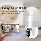 Features: * Remote control: monitor the smart bulb wifi camera anytime and anywhere via APP * LED bulb: the panoramic camera bulb can be turned on or off automatically, manually, and periodically. * HD 5MP: 5 megapixel high quality video clips provide clear and detailed images. * Wifi Connection: light bulb camera supports connection via wifi. (Only support 2.4Ghz router) * Alarm function: when the bulb camera detects someone entering the shooting area in time, it will push an alarm notification to your mobile phone. * Two-way audio: with built-in microphone and speaker, you can talk to others through the camera. * Pan & Tilt: control the rotation to any corner you want to check in APP, protect your home security. * Dual light source night vision: built-in 4 white LEDs and 4 infrared LEDs, you can see clear images even in complete darkness, support full colour night vision. Specification: Product name: WiFi camera. Camera type: bulb. Lens Pixel: 5MP. Video compression: H.265. Camera lens: 3.6mm. Waterproof rating: IP66. Sensor: CMOS. Recording Mode: All Day and Event Recording Number of light beads: 4 IR + 4 white light. Network support: P2P mode, 2.4Ghz wireless. Memory Expansion: 128GB micro SD card (not included). Rotation Angle: 355°(Horizontal)/90°(Vertical) Alarm Trigger: Video push, speaker alarm, alarm recording. Applicable places: home, shop, school, supermarket, factory, etc. Installation: Embedded Cloud Storage: Subscription required. Apps: v380pro. Compatible devices: Android/ios. Working power supply: 110-240V. Base type: E27 . Product size: about 155*95mm. Product colour: white. Product material: ABS. Package List: 1*Light bulb camera (not including TF card) 1*E27 base 1* User manual 1* Screw kit Attention: 1.TF card in the photo is not included! 2.Colour may vary according to the light! 3. Please allow a slight 1-2cm difference due to manual measurement! 4. Thank you for your understanding and attention, wish you have a pleasant shopping experience! On Feb 4, 2025 at 23:07:11 PST, seller added the following information: