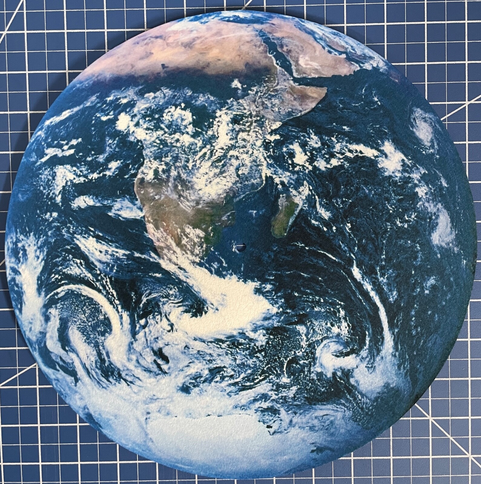 The EARTH Turntable Slipmat is a 1/16 inch thick vinyl record accessory designed for DJs. Made of durable polyester material, this white slipmat features a diameter of 11.75 inches, making it compatible with any universal turntable model. Manufactured in the United States, this slipmat is a must-have for any vinyl enthusiast looking to enhance their DJ equipment with a reliable and high-quality gear accessory.