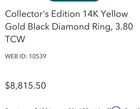 EFFY 14K Yellow Gold Black Diamond Ring Size 7.5 Collectors Edition