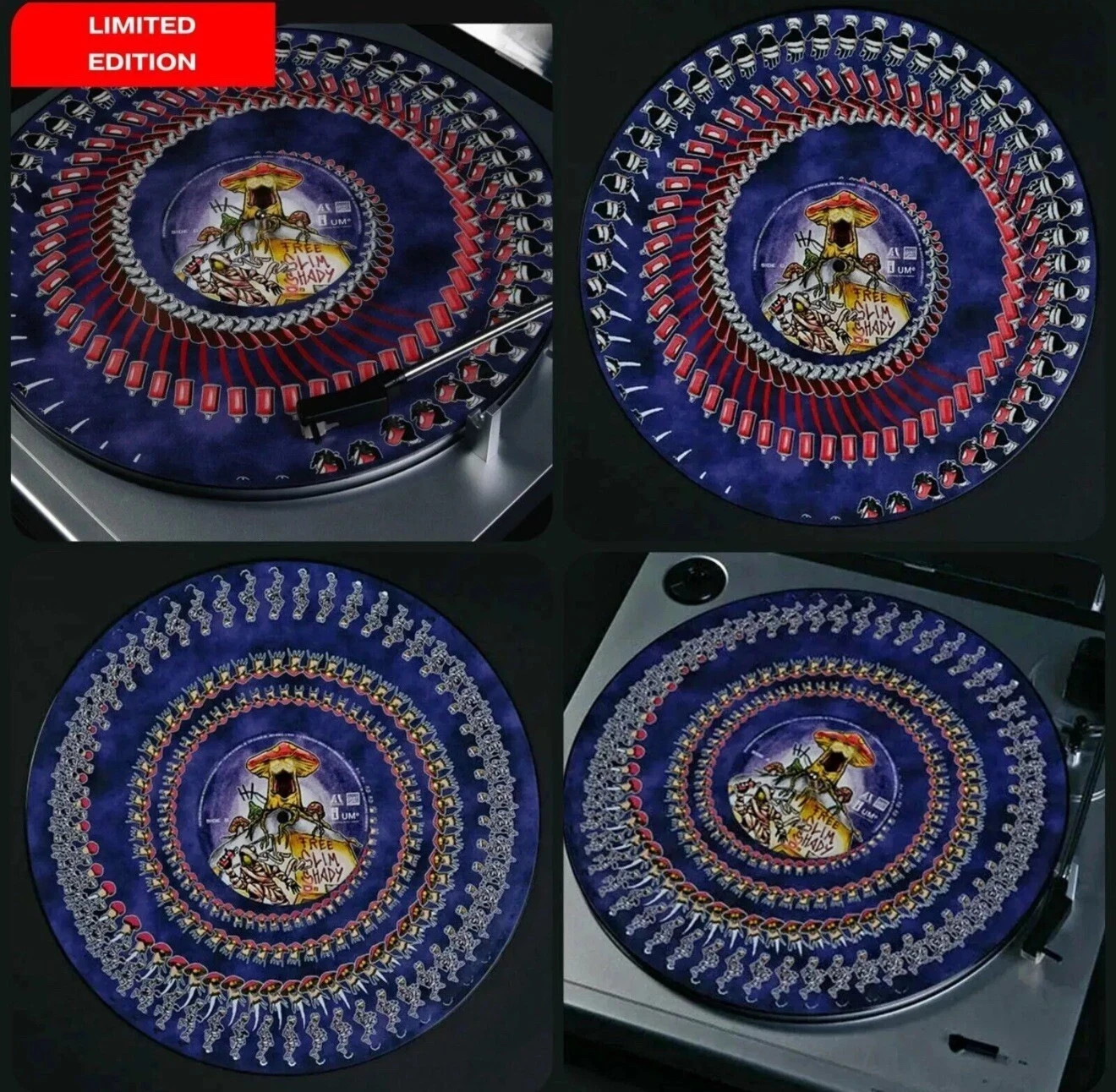 This is a special edition 2LP vinyl record of Eminem's "SSLP" album, celebrating its 25th anniversary. The record is a limited edition Zoetrope picture disc featuring multicolor designs. It plays at 33 RPM and is released under Aftermath Entertainment. The record size is 12" and it includes features like the Zoetrope effect. This edition caters to fans of rap and hip-hop music.