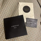 Looks awesome! Ultra clean and sharp inside and out, beautiful pattern with a kind of orangish/brownish gold type color plaid over taupe, the fabric is a wool/flax/silk blend and super comfortable. It has hand pick stitch tailoring with a three button front, open top patched on waist pockets, also notch lapels and four buttons apiece on the sleeves. The interior is loosely constructed with a partial lining in soft tan/brown/taupe type color stripes, little to no padding in the shoulders. It has really nice interior labels and lastly it has dual vents in the rear. Also of note there's no original price tags, but see pics it has the original bag of extra buttons, the original Corneliani hype booklet, and inspection label. I doubt it's been worn much if at all. Measurements: Bust: 47 Waist: 45 Sleeve length: 22.75 (2 in. extra to let out) Length: 32 Shoulders: 20 Lapel width: 3.75