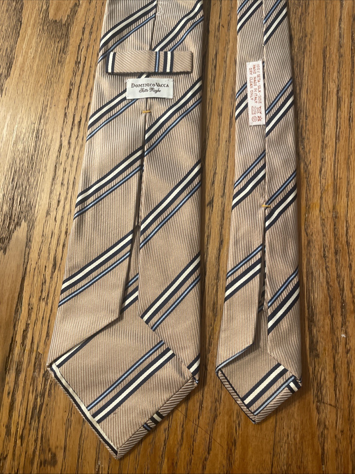 The EUC Domenico Vacca 7 Fold Striped Silk Tie is a luxurious and stylish accessory for men, perfect for adding a touch of sophistication to any outfit. Made in Italy from 100% silk fabric, this designer necktie features a classic multicolor striped pattern, ideal for a preppy and polished look. The 7 fold silk design adds a unique and elegant touch, making it a versatile and high-quality piece for any man's wardrobe.