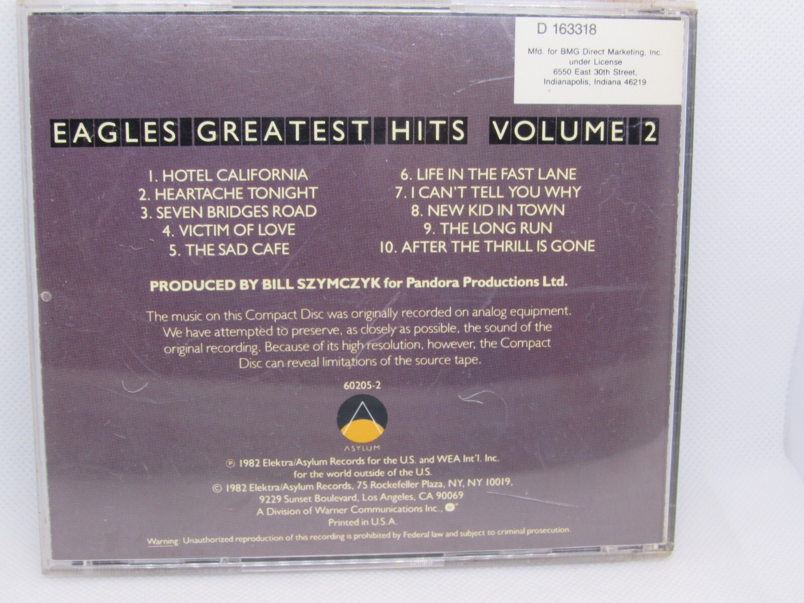 The Eagles Greatest Hits Volume 2 CD is a standard jewel case album featuring a compilation of popular hits by the artist Eagles. The CD is in near mint condition, with a mint jewel case and excellent inlay. The album includes a mix of pop and rock genres from the 2010s and 2000s, showcasing the iconic sound of the Eagles. Made in the United States, this CD is a must-have for fans of classic rock music.