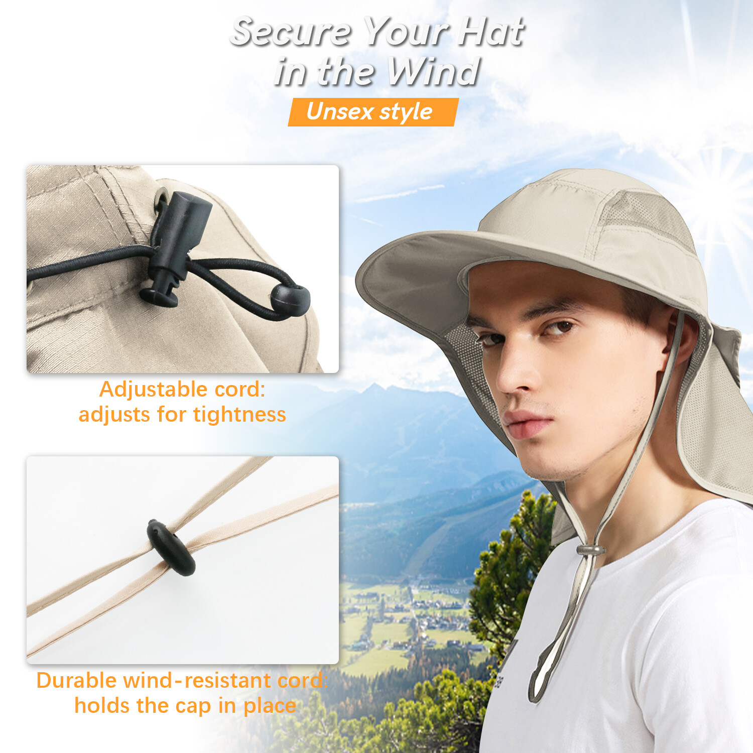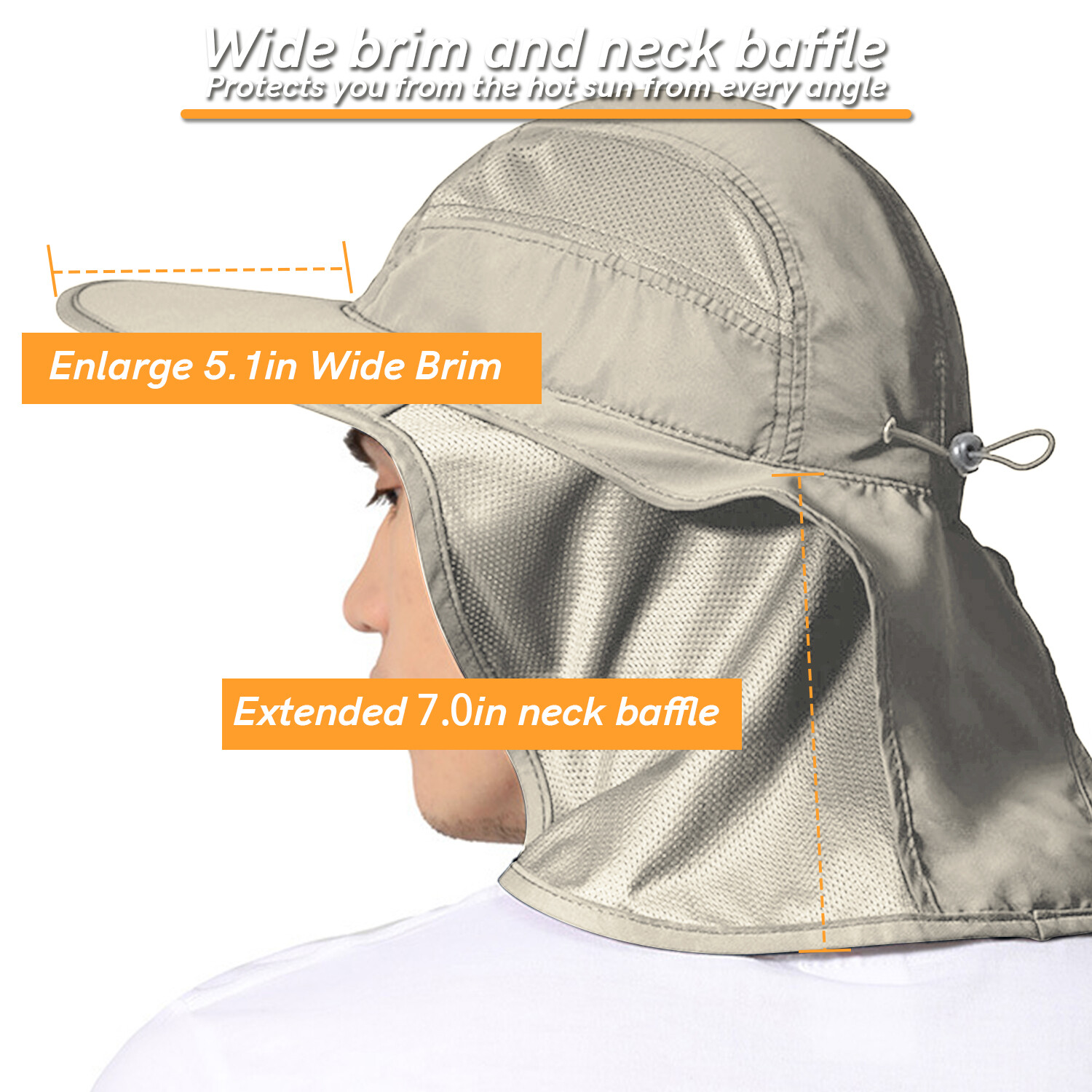 Product Description 【ULTIMATE SUN PROTECTION MATERIAL】 UV protection light-weight, breathable mesh performance micro-fiber features 100 SPF/ UPF 50, block 97.5% or more of sun UV ray. Windproof, breathable, quick-drying, ultra-light. 【ULTIMATE SUN PROTECTION MATERIAL】 UV protection light-weight, breathable mesh performance micro-fiber features 100 SPF/ UPF 50, block 97.5% or more of sun UV ray. Windproof, breathable, quick-drying, ultra-light. 【Durable, Waterproof & Sweat-absorbent】 The stylish fishing hat is made of high-quality 100Percent nylon which is durable, waterproof and breathable. What's more, it is also sweat absorbent for which there is a sweat band inside. Taking with our sun protection hat to do what you want, ignoring the harsh sun and the light rain. 【ADJUSTABLE REAR DRAWSTRING&SIZE】 Adjustable rear drawstring for snug fit. Built-in moisture wicking sweatband keep you cool in summer. Hat Circumference Appro x 22-23" ; Hat Brim Length: Approx 5.1" ;Unisex Design ,The back of the hat for the elastic fast buckle,Adjustable Fit To Average Adult Head. 【VERSATILE & FUNCTIONAL】 Light-weight and packable with flexible wide brim and neck flap for easy carrying and storage. This fashion functional sun hat is the best choice for traveling and outdoor activities such as fishing, exploring, hiking, trail, camping, gardening, picnic, beach, canoeing, rafting etc.it is also a good gift choice for your friends and family. Package includes: 1 x Wide Brim Sun Hat UV Protection Bucket Cap