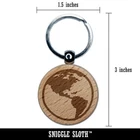 Earth Globe Travel Doodle Engraved Wood Round Keychain Tag Charm