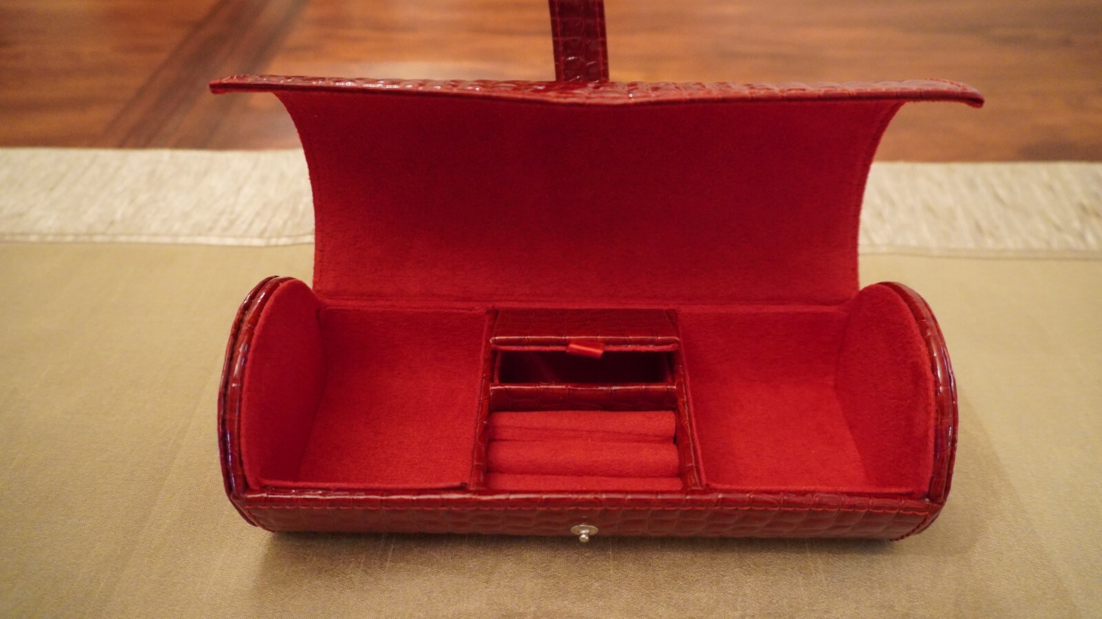 Jewelry Organizer. This is a beautifully made, red faux leather Jewelry organizer. Put all your favorite pieces of jewelry in one unique space and stare at awe at your collection.