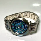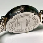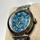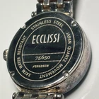 This Ecclissi women's watch features a silver-tone stainless steel case with an opal dial and baton indexes. The oval-shaped watch has a 35mm case size and a one-piece stainless steel strap. New battery installed! It is a quartz analog watch with a multicolor dial and a classic design suitable for both formal and casual wear. The watch does not come with papers, service records, original box/packaging, or a seller warranty.
