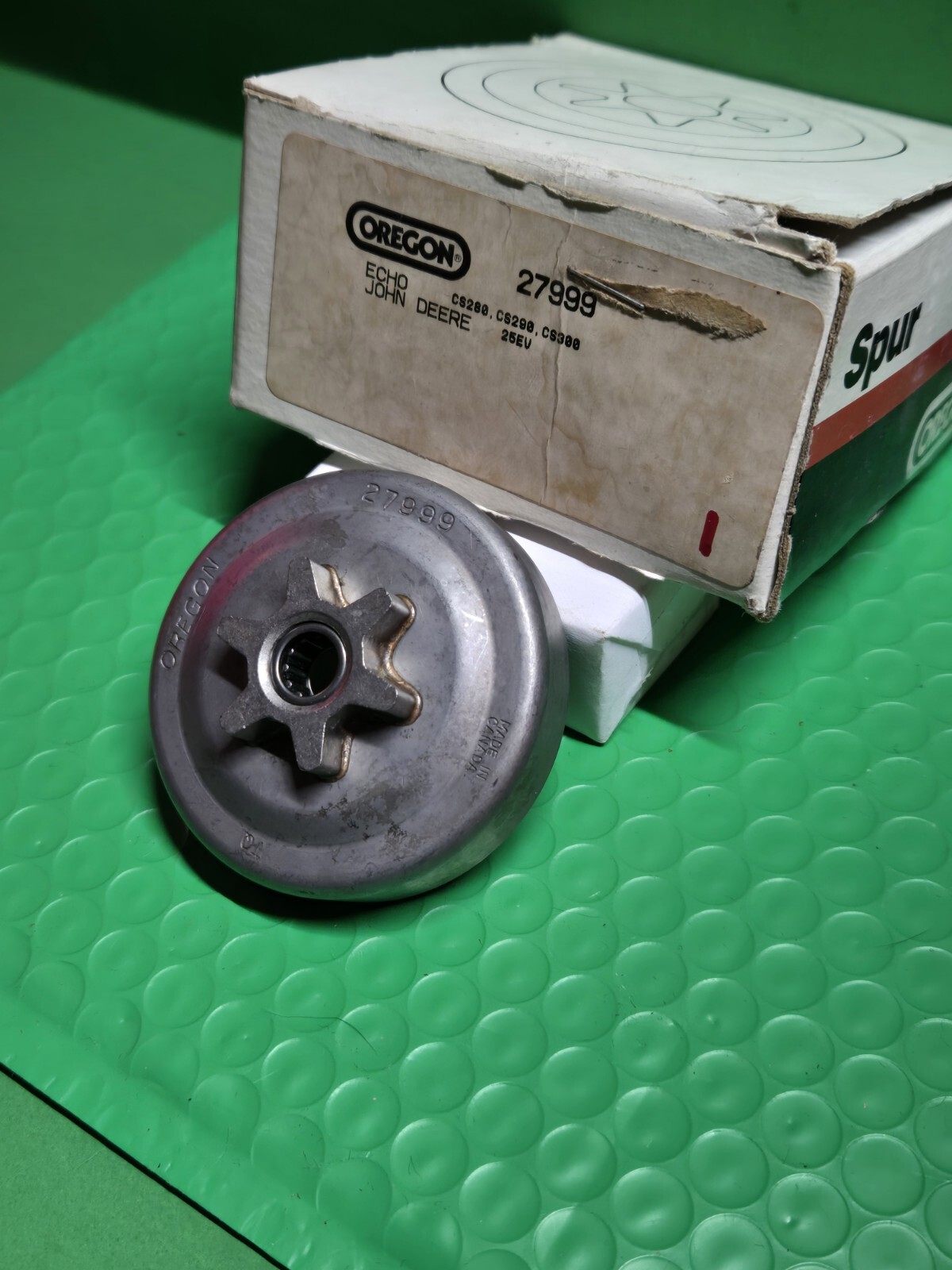 Clutch Drum / Sprocket # 27999 3/8" Pitch x 6 Tooth Low Profile Manufacture Pressed-In Bearings Come With This Unit For Echo Models; CS-280, CS-290, CS-300 For John Deere Model 25EV I have more than 1 for sale, 1 PER Purchase. Always confirm that your chainsaws bar and chain is the same as the sprockets pitch which you are going to purchase, or it will not work correctly! You will receive only what is shown in the pictures. *PLEASE double check your chainsaw to make sure this will work on your particular unit! Due to conditions from where I make my purchases; Item could have surface rust, specking, dust, dirt, grease, and blemishing from working shop conditions, storage and shelf life. Please note this item is an old shelf stock part. Expect some specks and spots, lines and blemishing. I buy old shelf stock inventory and parts from closed / shuttered businesses. (New Old Stock) FAST SHIPPING To U.S.A. Buyers! I ship at least once every 24 hours during normal business days of the week. Tracking Number Will Also Be Provided ***Note to International buyers*** Any International / Global Shipping and costs, fees, and charges are set by eBay. I ship to their U.S.A. terminal only, they take over from there. I have no control over the shipping charges, fees, or delays for any sales outside of the U.S.A.! Thank you for your interest!