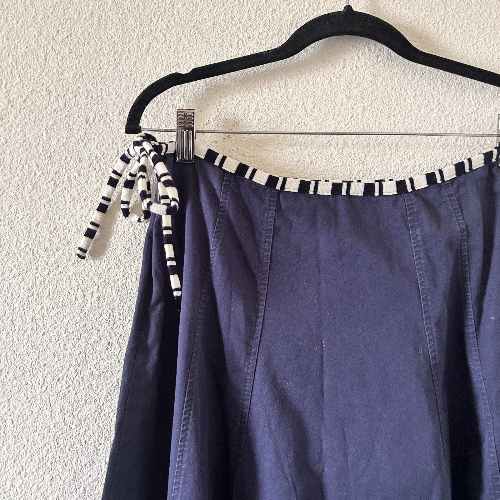 Eclizia Midi Skirt Fit Flare Sz 30 Blue Preppy Coastal Nautical Academia in good condition/ Not stretchy/ side zip with tie 14.5” across waist 19” across hip 24” length Approximate measurements All final sale #39 Dressy nautical preppy boasting coastal granny academia Summer Spring