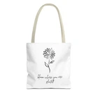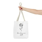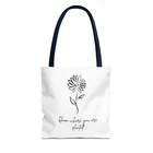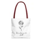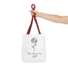 Available in 3 sizes to add both functionality and style, these custom-printed tote bags come with multiple handle colors to match your designs. Made with spun polyester, these bags feature double-stitched seams, cotton webbing straps, and nonwoven laminate lining for high-end durability. Your all-over print is created with dye sublimation for high-end visuals. .: Made with 100% polyester, a medium-weight fabric (6.49 oz/yd² (200 g/m²)) that is highly durable and perfect for everyday use. .: 5 color handle options .: All tote bags come with a non-woven laminate inside, cotton handle, and are available in 3 sizes (1x large storage compartment) so that you can match your customers' needs. .: NB! Size tolerance 0.75" (1.9 cm)