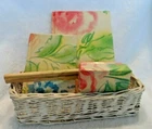 stationary set - 2 pencils, address book, notebook, keepsake box, wicker basket wicker basket measures - 6.5" x 3 x 1.5" nice floral vintage set, never used smoke free home. I am always happy to combine shipping. INternational shipping is additional