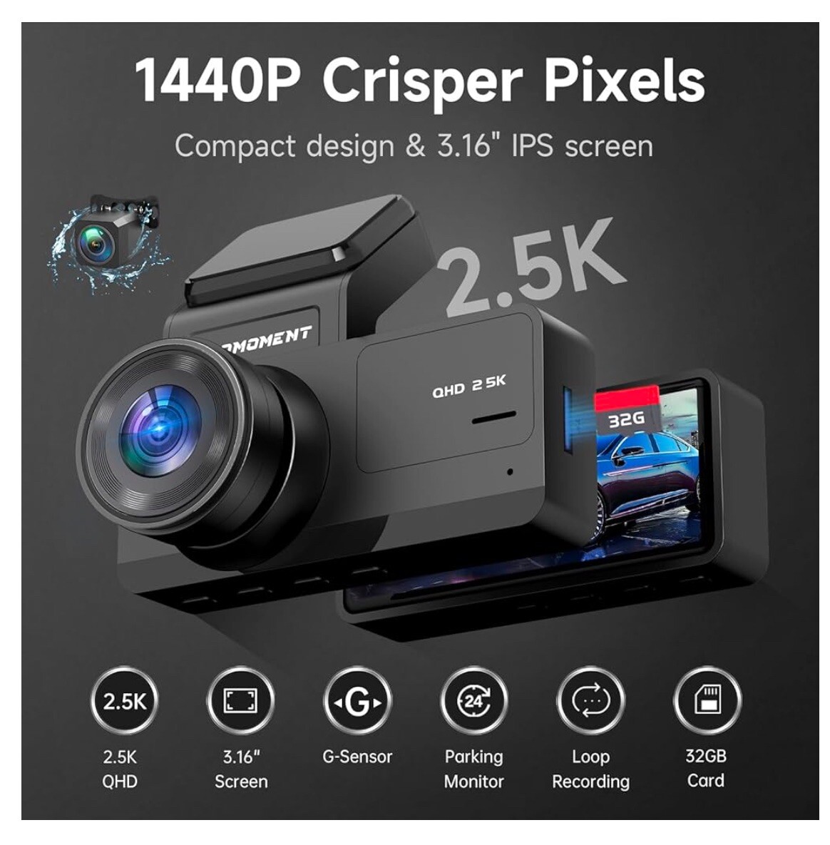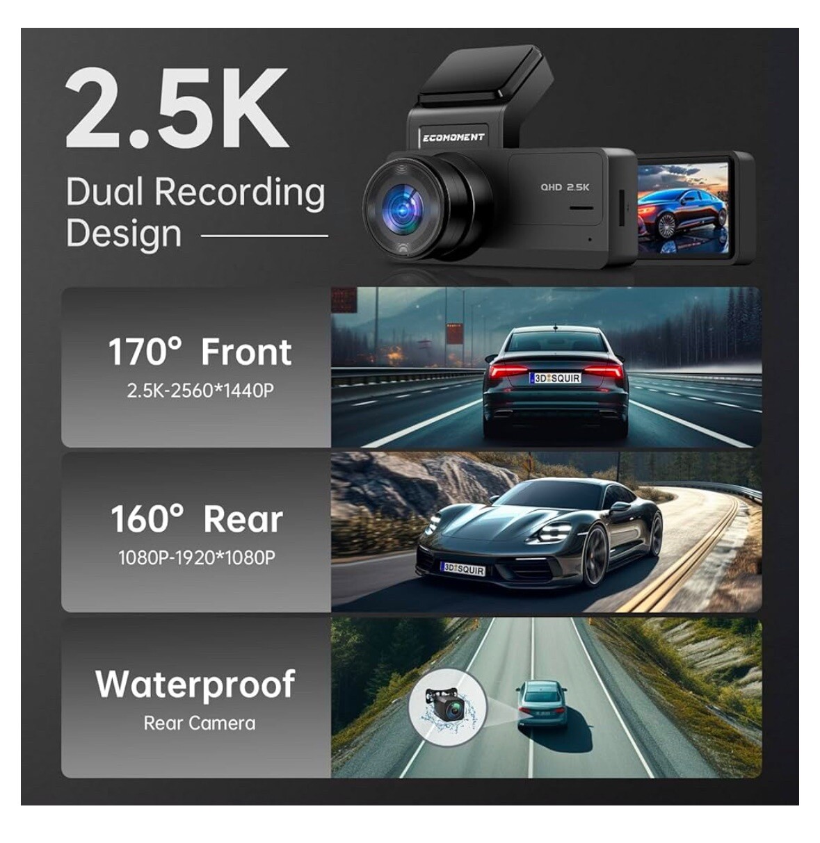 32GB SD Card: Dash cam for cars built-in a 32GB card, and the camera can use up to 256GB Max. The Ecomoment S70 dash cam is backed by our 12-month warranty. If you ever encounter any issues, simply write to us directly, and we'll respond within 12 hours. Super Large 3.16‘’ IPS Display: Ecomoment S70 car dash cam enhances your viewing experience with its 3.16" HD IPS display. Show real-time images, capturing stunning landscapes or documenting essential evidence which helps you see every detail when playing back on the car dashcam. Super Night Vision and WDR Technology: Ecomoment Dash Cam' adopts an ultra-large F1.8 aperture and 6 layers lens that increases 60% light intake, and is equipped with WDR (Wide Dynamic Range) technology, achieving super night vision by automatically balancing the exposure in extremely dark scenarios, to ensure clear and sharp footage. Loop Recording & G-Sensor: When Ecomoment dash cam storage limit is reached on the memory card, new recordings will automatically overwrite the oldest recordings. Triggered by G-Sensor, it can automatically detect a sudden shake/collision and lock the footage to prevent the video from being overwritten even in loop recording. Cigarette Lighter Socket Adaptor: The charging cable that comes with the Ecomoment S70 car dash cam needs to be plugged into the cigarette lighter of your car, please make sure your car has a cigarette lighter socket before purchasing. (The usb-c cable can also supply power for the dashcams) Important Notice: Check that the car cigarette lighter is on constant power source before use. Plug the car charger into the cigarette lighter, turn off the car and if there is a red light on the camera, you have constant power to the cigarette lighter. To prevent the Ecomoment car camera from draining your car's power supply, it will be necessary to manually turn off the dash camera or use the hardwire kit (ASIN: B0CTHMSKWF). Built-in Lithium Battery: Ecomoment S70 dash cam front and rear with built-in lithium battery, supports collision detection while parking and can automatically turn on and record video for about 30 seconds, then turn off. If you need the 24/7 parking monitor, please use the hardwire kit (ASIN: B0CTHMSKWF).