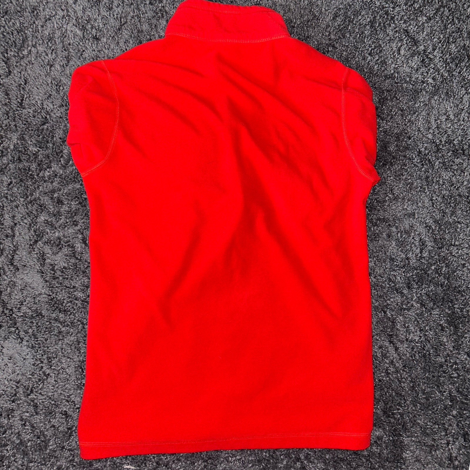 The Eddie Bauer First Ascent 1/4 Zip Fleece is a men's pullover in size small, featuring a mock neck with a stand-up collar and a zip closure. Made of lightweight polyester fleece, it is perfect for travel, activewear, or casual wear during the winter, fall, or spring seasons. The red shirt with the Eddie Bauer logo embroidered on the chest is ideal for outdoor activities such as walking and hiking, offering both style and functionality for the modern man on the go.