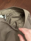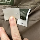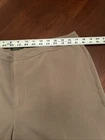 Elevate your wardrobe with these Eddie Bauer women's pants in a beautiful beige tan color. These pants feature a convenient zip closure and straight leg style, with a mid-rise waist size of 34 inches and an inseam of 30 inches. Perfect for any occasion, whether it be travel, casual outings, or workwear, these pants are made of spandex fabric with a twill lining for added comfort. The pants also come with a button and zipper accent, adding a touch of sophistication to your outfit. With the Mercer Fit model, these pants are designed for a regular fit and are machine washable for easy care. Ideal for any season, these pants are a classic addition to any professional or capsule wardrobe.