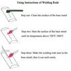Efficient Copper Aluminum Iron Welding Rods No Need for Solder Powder Welding DESCRIPTION Specifications: *Product: Welding Rods *Material: Copper Aluminum *Melting point: about 380℃ *Diameter: .6mm/2.0mm *Length: 33cm (13inches) *Feature: Fux-cored Electrode, No Need Solder Powder, Easy melt (Applications: Stainless Steel, Copper, Aluminum, Iron, Refrigerator, Air Conditioner and Other Metal Welding Using Steps of welding wire: : cleaning and polishing for of the base material. 2: heating for of the base metal at the welding point until the temperature reaches the working temperature of the welding wire of 380-400 °C, so that the welding wire can be formed by the heat conduction of the base metal. Note: Do not use flame to burn the welding wire, and only when for temperature of the base metal is sufficient, the welding wire can flow and penetrate the metal capillary *Quantity: 20pcs Package Contents: 20 x Welding Rods(flux cord type) or 50 x Welding Rods(not flux cord type) Notes: . The real color of the item may be slightly different from the pictures shown on website caused by many factors such as brightness of your monitor and light brightness. 2. Please allow slight manual measurement deviation for the data. POLICES Shipping Payment WARRANTY We only ship to confirmed ebay Order addresses. Please comfirm that your Order address is in line with your shipping address. Please kindly note that the c ombined shipping is not provided because the shipping fee is calculated by weight. Also, the each additional item means exactly the the same color and size. It takes about 7 -15 working days to US; about 10-30 working days to other countries. Transit time may be a little delayed because of the bad weather and customs inspection . If you do not receive your item within 30 working days since payment finished, please contact us immediately for further assistance. Payment must be completed within 5 days. If you have any problems about payment, please contact us via ebay message. We strive for 100% customer satisfaction! Positive Feedback is very important to us. If you have any questions, p lease feel free to contact us via "Ask seller a question" . We will reply your email within 24 working hours. On Jan 9, 2025 at 21:47:03 PST, seller added the following information: