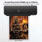 YOU MAY ALSO LIKE 2-in-1 Hot & Cold A4 Laminating Machine with 2 Modes for Home Office School US 25.99 USD Free shipping Sheet Size A4 Warm Up Time 120 second About this item 【Fast, Efficient & Quiet】The laminator machine with laminating sheets warm-up quickly within 120 seconds, and the lamination speed reaches up to 280-300mm/min with ultra-low noise. The laminating machine will create high quality, professional and wrinkle-free results quietly to improve your work efficiency. 【Hot & Cold System Options】The laminator machine have cold & thermal laminating modes to meet different daily requirements and different type of laminating sheets. The hot laminator system is suitable for general documents, and the cold laminator system is more suitable for items sensitive to high temperature and damaged by heat. 【No More Paper Jam】The “RELEASE” button is designed to resolve the accident paper jam, ensuring the safety of your files and the laminate machine. When a paper jam happened, please turn off the lamination machine and hold the “RELEASE” button, and then you can remove the stuck paper easily. 【Wide Application】The wide thermal laminator machine is suitable for all A4/A5/A6 size paper,photos and pictures, perfect laminator machine for home, office and school use. It helps you to cherish your memory and protect your important documents from water, dirt, fading, scratches or tears. 【100% Satisfactory Service】if you meet any problems or have any questions, please feel free to contact us, we would be more than happy to solve your concern.