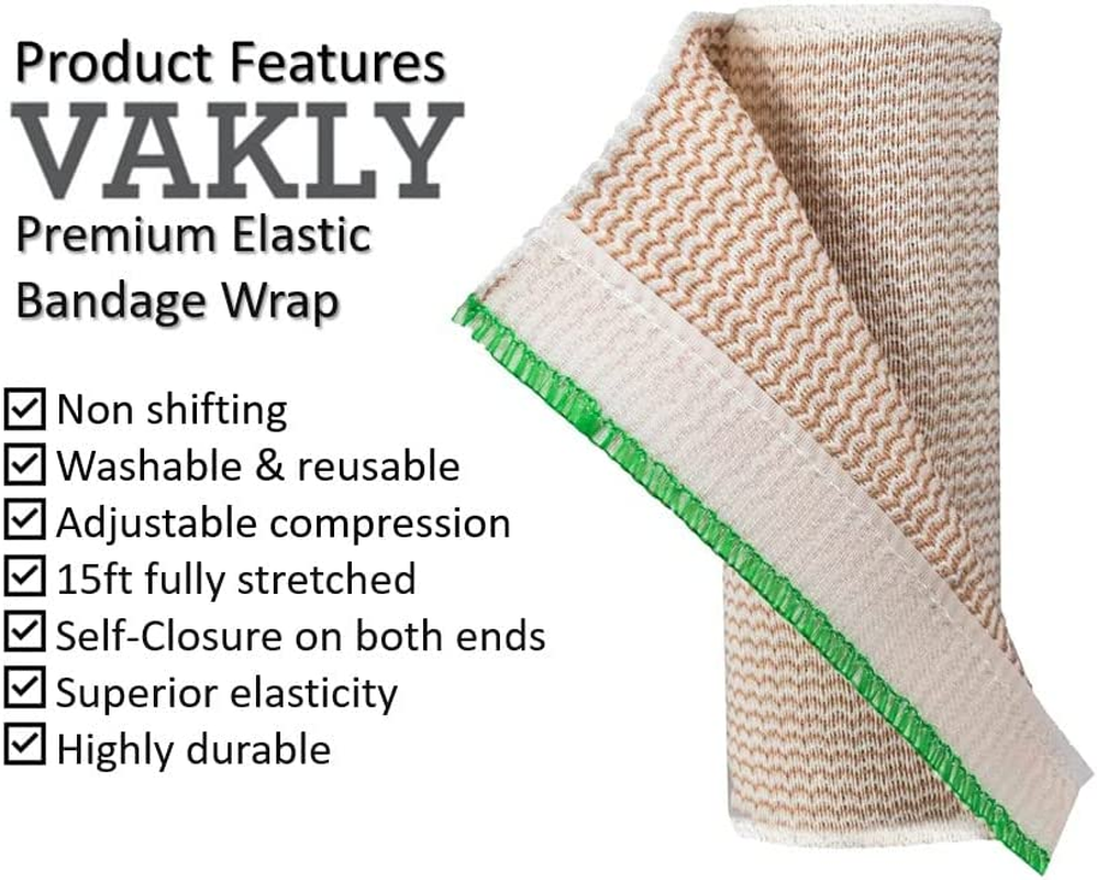 EASY TO USE – These Elastic compression bandages features 2 Self-Closing hook and loop strips on each end providing a non-slip grip while using no pins, clips, or tape. MAXIMUM COMPRESSION – Elastic compression bandage rolls provide consistent stretch and maximum compression for injuries, suitable for doctors, EMTs, hospitals and sport trainers for use with aching muscles and joints. INDIVIDUALLY PACKAGED – Each Elastic bandage comes in an individually poly-wrapped making sure the bandages get to you clean and safe to use. LATEX FREE - Not made from natural rubber latex ideal for those with latex allergies. PICK YOUR SIZE - Self-closure bandages come in 2’’, 3’’, 4’’ and 6’’ and all stretch to be 5 yards long giving you consistent compression when needed. Product Description 2 INCH 3 INCH 4 INCH 6 INCH LATEX FREE - Not made from natural rubber latex. Ideal for those with latex allergies. ELASTIC BANDAGE WRAP WITH SELF-CLOSURE 5 Yards When Stretched for Customized Compression on Knee, Ankle, Wrist and Abdomen These Elastic bandages features 2 Self-Closing hook and loop strips on each end providing a non-slip grip while using no pins, clips, or tape. Elastic compression bandage rolls provide consistent stretch and maximum compression for injuries, suitable for doctors, EMTs, hospitals and sport trainers for use with aching muscles and joints. Each Elastic bandage comes in an individually poly-wrapped making sure the bandages get to you clean and safe to use.