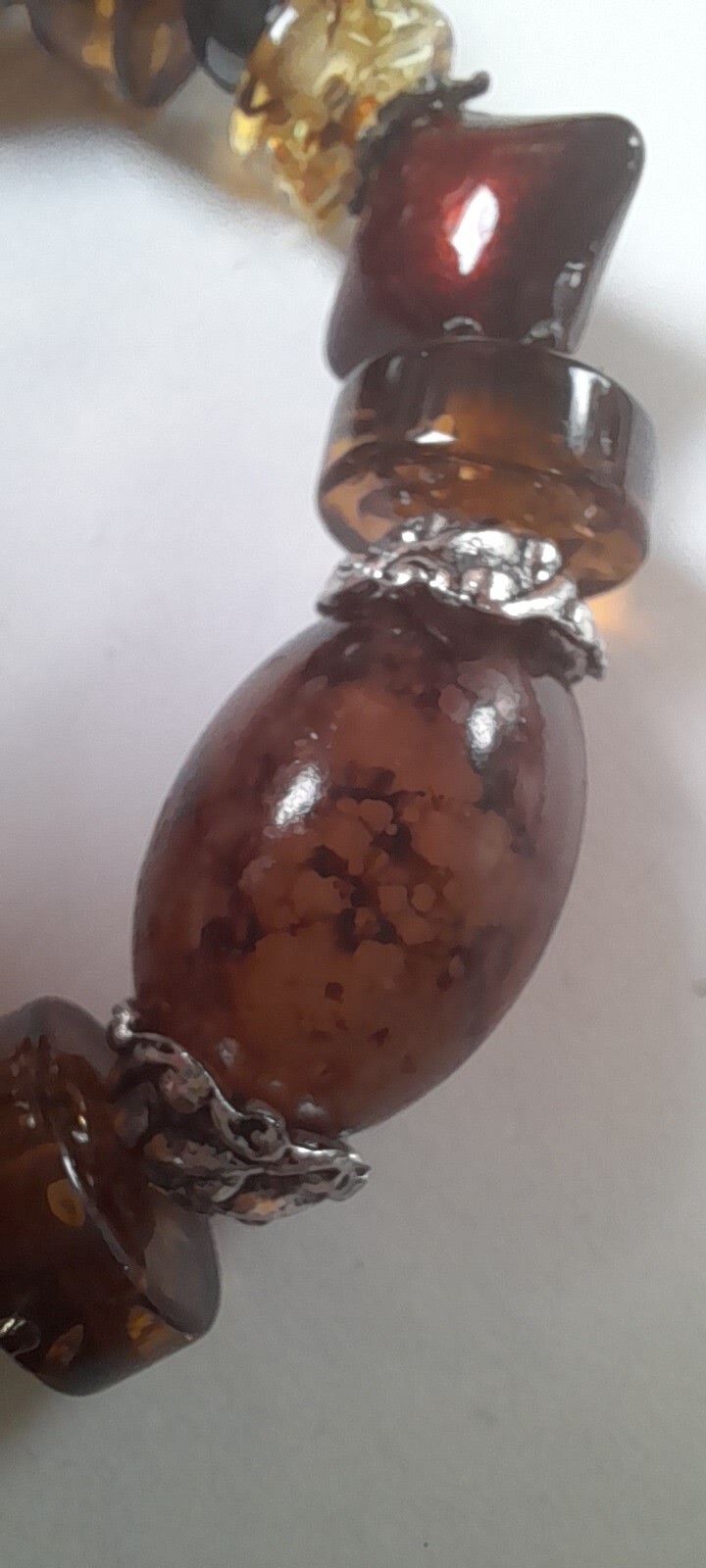 Synthetic oval beads marble and Amber Effect with silver tone spacers.Chunky ,statement with lots of detail.Also have other jewellery listed.Could combine postage