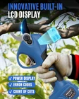 PRU28 Cordless Electric Pruning Shears, 28mm 850W Cordless Electric Pruning Shears for Gardening, Black/Blue 【28mm CUTTING DIAMETER】- The -Pru28 electric tree trimmer effortlessly cuts through branches up to 28mm thick without causing damage. The blades are forged from Swiss SK5 high-carbon teflon plating steel, ensuring sharpness and resistance to wear and tear. It allows for smooth and effortless pruning, akin to cutting through butter 【PROGRESSIVE CUTTING CONTROL】 - The electric pruner features a Progressive cutting control design, allowing the blade opening to be stopped at any angle between 0-28mm. It comes with 2 adjustable cutting gears, 0-20mm and 0-28mm, catering to various cutting and pruning requirements, ensuring safer and more precise pruning operations 【ULTRA DURABLE 100% COPPER BRUSHLESS MOTOR】 - The 850W brushless motor of this pruner is not only more powerful and faster, but also makes cutting branches easier. Additionally, it greatly reduces energy loss and heat generated by motor friction, eliminating the need for carbon brush replacements and extending the service life. It completes one cut in just 0.29 seconds 【HIGHLY PROTECTIVE EQUIPMENT FOR SAFE WORK】 - Safety features include quickly pressing the trigger twice before using the electric scissors, an anti-contact blade automatic power-off design (which cuts off power when one finger touches the trigger and the other finger touches the fixed blade), and automatic power-off after 10 minutes of non-use 【WIDE APPLICATION】- Weighing only 910g with the battery, this cordless pruner is designed with an ergonomic handle that is shockproof and anti-slip, ensuring comfort even during long periods of use. It can be used in gardens, parks, farm 【16.8V 2000mAh HIGH-PERFORMANCE BATTERY】 - Equipped with 2pcs 16.8V 2000mAh rechargeable batteries, this tree pruner ensures all-day usage. The batteries have undergone various safety certifications in the United States and Europe, such as UL, CE/UL/MSDS/UN 38.3/ROHS Certification. They feature overload and temperature protection, providing longer battery life