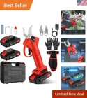 Electric Pruning Shears Cordless, Branch Cutter, Trimming Scissors Battery Power, 30mm Inch Cutting Diameter, SK5 Blade Tree Trimmer, 2 Rechargeable 2ah Lithium Batteries 【Product features】 SK5 sharp cutter head, with extremely powerful cutting force, service life of up to 250,000 times, replaceable cutter head, brushless motor power, powerful large capacity lithium battery, waterproof design of the body is not afraid of moisture 【Gardening tools】 Our electric trimmers will revolutionize the way you prune without noisy chain saws or tiring scissors, more efficient and labor-saving than traditional manual trimmers, can greatly improve work efficiency suitable for young or old, female or male use 【Safety switch】 electric pruning machine built-in safety switch, when the power switch is turned on, you need to quickly pull the trigger twice, at this time the green light, hear the "beep" sound (slow pull can not start the safety switch). In order to prevent children from starting the electric trimmer, we designed a safety switch 【Versatile】 Our pruners can be used in various parks, orchards, gardens, farms, indoor and outdoor places 【Quiet Operation】 Enjoy the tranquility of your garden with electric pruning shears, which operate quietly compared to noisy chainsaws. Their silent performance enhances your gardening experience while maintaining efficiency and ease of use for all users 【Instructions for use】Install the batteries, turn on the power and the indicator light turns green. Press the trigger 2 times continuously to activate the pruning shears. Press and hold the trigger for 2 seconds to adjust the size of the blade caliber of the electric pruning shear. Press and hold for 4 seconds to turn off the electric pruning shear. If you need to remove the battery, please turn off the battery pruning shear first, then press and hold the red power button on the bottom of the pruning shear for 3 seconds, the indicator light will go out, Then press and hold the red button part on the battery to remove the battery 【Reliable After-sales Service】If you encounter any issues with this product, please notify us immediately, and we SATISFACTION GUARANTEE a quick response and resolution within 24 hours. Your satisfaction and happiness are our utmost priority