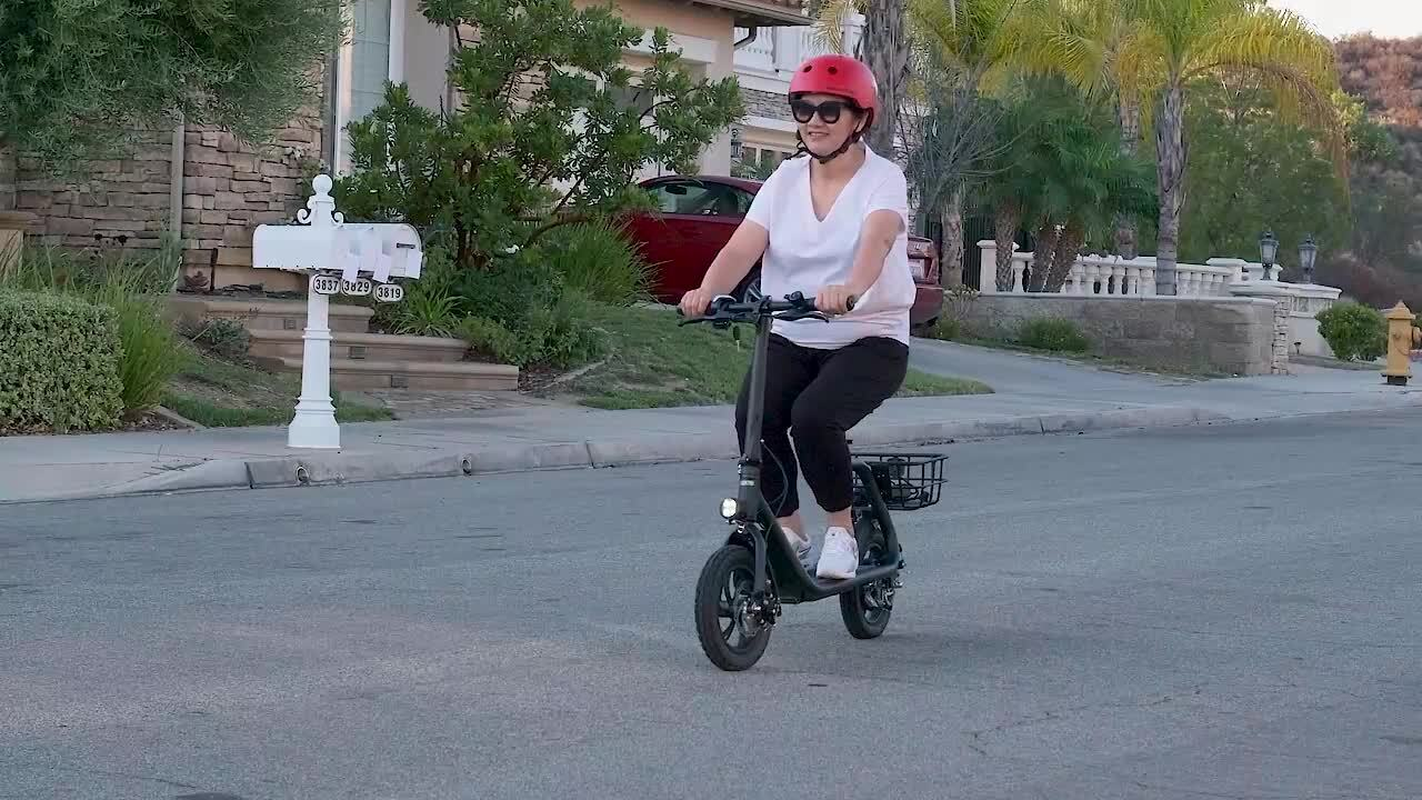 eBay Sports Electric Scooter with Seat for Adult Electric Bike Electric Moped for Adult Commuter. Feature Powerful Motor & Long Range: The adult electric bike comes with a 450W powerful brushless motor and large 40 cells 8.0Ah Lithium-ion battery, enables a 12.5-mile range, and a max speed of 15.5 mph. Portable & Lightweight: The foldable electric bike only weighs 42 lbs and can comfortably accommodate riders up to 265 lbs. This adult electric scooter can be easily folded and stored in the car trunk, which makes it perfect for commuters and students. Safe & Durable: With double braking systems, the front and back disc brake of the e-bike give you double safety. The 12" tires built for multi-terrain of daily use or outdoor activities. Detail Oriented Design: The E Scooter come with 13 x 11 inch rear carry basket and scooter deck, front LED light and rear reflectors for safety. Easy Assemble Required: The only assembly required is the seat and basket attachment. The handle bars are folded and just need to be erected. All tools are provided in the box. Package Listing 1 X E Scooter 1 X Charger 1 X User Manual 1 X Tool Kit After you receive the adults scooter,before first Riding,please do the follows: 1.Inflate the Tires before Riding. 2.Complete Charging(Light RED:Charging, Light Green: Charging Compelte). The E-bike have passed safety standard detection Shipping Payment Return & Refund policy Feedback Customer Support - Contact Shipping FREE SAME BUSINESS DAY MONDAY- FRIDAY SHIPPING FROM USA. All orders and payments received before 4PM EST (1PM PST) will be shipped the same business day. All other orders within 1 business day. No shipping on Weekends or US Public Holidays. No responsibility for any custom duty Shipping information will be updated when available. Payment We accept payment via PayPal. Use PayPal at checkout to pay with credit or debit. Immediate payment is required. Shipping will be arranged within 1 business day once payment is cleared. Return & Refund policy 1.We stand behind our items and offer 60 days warranty. All items are in new and working condition unless specified otherwise elsewhere in the description. 2.All Returns - defective or otherwise - MUST BE PREAUTHORIZED to guarantee refund or exchange. Please contact us to get an authorization and return address. 3.Buyer agrees to pay for the cost of re-shipment for undeliverable or wrong addresses. 4.Buyer is responsible for Return Postage as well as a 20% restocking fee if return/replacement is not a result of our mistake such as wrong item. 5.Replacement or Refund will be made upon receipt of the returned item. Please include tracking number so we can process ASAP. If you do not wish to wait for a replacement, please repurchase the item. 6.ALL REFUNDS will be processed via PayPal. Please double check via PayPal history and transaction for confirmation. PayPal will send it back to whatever you used to pay within 3-5 days. Feedback We strive to provide the best products and services. Your positive feedback 5 stars DSR help us do better. If anything about your transaction did not meet expectations, please CONTACT US and give us the opportunity to make things right. We are always here to help. Customer Support - Contact Please do not hesitate to CONTACT US. You can message 24/7 on eBay for all questions and inquiries. We will get back to you within 1-2 business days at the latest.