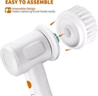 Electric Spin Scrubber-Power Scrubber,Electric Cleaning Brush Cordless Power Scr 【Efficient & Powerful】:Our powerful electric spin scrubber oscillates at over 330 rpm/high rotating speed to deep clean dirt and grime. No more manual labor with a traditional cleaning brush! The power scrubber after charging for about 2.5 hours, it can work continuously for up to 120 minutes. Long-lasting battery life enough for daily cleaning. 【4 Kinds of Replaceable Brush Heads】:This electric cleaning brush comes with 3 interchangeable heads for targeting different areas efficiently. Our electric cleaning brush scrubber can tackle all cleaning jobs. The different types of brush heads (bathroom scrubber、 scrub brush for cleaning dishes、bathtub scrubber、cepillo electrico para limpiar)cater to all cleaning areas in kitchens and bathrooms, such as floors, tiles, bathtubs, ovens, stoves, sinks, pots and pans, etc. Any corner can be clean as new! 【Cordless Power Brush】:Enjoy maximum mobility and convenience as this high-performance electric scrubber is battery-operated and lightweight -- allowing for easy carrying from room to room. No more tangled cords or difficult to reach areas. Our electric scrubber is cordless, portable, and rechargeable for easy use anywhere and anytime. 【IPX7 Waterproof】: The long-lasting battery life is good enough for all the cleaning. The professional IPX7 waterproof level enables the spin scrubber to work in the water without being damaged. You no longer have to worry about cleaning brush falling into the water.The shower cleaning brush electric spin scrubber is a must have for every family. Good gift idea for friends, families. 【Ergonomic Design】:This electric spin scrubber kitchen & bathroom cleaner features a comfortable grip handle that allows for easy maneuverability and precision when cleaning, ensuring that scrubbing is now painless and efficient. Say goodbye to manual scrubbing with an electric scrubber that does the hard work for you.