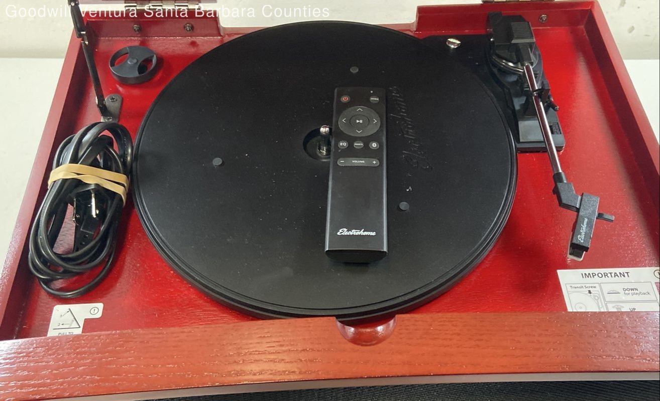 Electrohome Vinyl Record Player - Turntable, Bluetooth, Radio, CD, Vinyl to MP3 This item is Pre-Owned. Please refer to the photos for completeness, appearance, and details. Tested and Working Properly Radio AM/FM works Bluetooth Works Turntable Powers On Buttons Work Platter Turns Properly Tonearm Works Audio Output Works CD Player -Powers On - Lights/Display Work -Buttons/Knobs Function -Plays CDs Properly -Audio Output Works, Sounds Great! (Yes Remote And Power Cord Included) Note: Any testing of electronics for power and/or functionality will be mentioned within the listing description if applicable. Not all electronic items come with power cords or power adapters or accessory cables unless explicitly stated in the listing. Shipping Policy We ship all items the next business day by default, however it may take longer for oversized items or if our shipping department gets backed up. We ship all items by FedEx only using eBays discounted FedEx rates. Rates are set by eBay/FedEx, not by GoodwillVSB. All orders valued at $100 or more will be shipped with Signature Required unless you specify in a note on the order that you do not wish to require a signature for delivery. GoodwillVSB will not be liable for a lost or stolen item. Pickup Policy Local Pickups are available by appointment only using eBay messaging. Local Pickup orders MUST be picked up within 14 days of the date paid. Any orders not picked up within that timeframe will be considered a donation back to Goodwill and will be resold. Refunds will not be given for these orders. Pickups are available Monday through Saturday from 8am to 3pm at Goodwill Outlet 1401 N. Rice Ave, Oxnard CA 93030 – Entrance on Maulhardt St. Return Policy If you are not pleased with your purchase, contact us via eBay messaging within 30 days of delivery of your item to arrange for its return and a refund. A restocking fee may be charged if your product is not returned in its original condition or is missing packing material, manuals, accessories or parts. Returns / Refunds will be denied if the item has been tampered with, modified or otherwise altered from the state it was in when shipped to the customer. General Disclaimers All items are USED items donated to Goodwill Industries of Ventura and Santa Barbara Counties, Inc. to continue our mission of helping those with disabilities and other barriers find employment. All our products are inspected by our listers, we are not experts in any field. Damage to any of our items may go unseen. Please see images for further detail and ask any questions you may have before purchasing or bidding. In some instances, we may not have the necessary equipment to test certain electronics, this will be clearly stated in the description. Contact customer service through eBay messaging if you have any questions, concerns or doubts. Authenticated Items All items that are professionally authenticated by a third-party vendor will include a $9.99 handling charge.