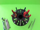 3D Printed Bench Desk Top Electronics Tool Caddy Pliers, Cutters, Tweezers, Strippers, Scissors Offered up is (1) 3D Printed Electronics Tool Caddy It was inspired by the long overdue and necessary organization of my own work surface. It stands 4" high using the included 1/4-20 nuts and bolts. And it has a 3" deep center cup intended as a catch all for brushes, X-acto knives, tuners, etc. The diameter is just shy of 7". Thickness is 7.5mm (0.3") It's being listed to gauge interest and it is the second of three prototypes. The design will likely progress and improve. Tools are not included. Shipping within CONUS using the most cost efficient ground service at time of purchase. Buyer will receive (1) 3D Printed Electronics Tool Caddy as shown. Tools are not included . Thanks for Looking!