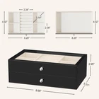 Jewelry Box with Glass Lid, Acrylic Jewelry Organizer for Women Girls, 2 Layers Jewelry Chest Storage Case for Earring, Ring, Necklace, Bracelets - Black Product Details Color: Black Brand: Messmenos Material: Velvet, Acrylic Style: Modern Special Feature: Anti-Tarnish, Space Saving, Dust-proof, Non Slip Recommended Uses For Product: Necklace, Bracelet, Ring, Earring, Bangle Product Dimensions: 5.31"D x 8.66"W x 2.95"H Target Audience: Girl friend, Women, Mother, Daughter Shape: Rectangular Occasion: Mother's Day, Christmas, New Home, Birthday, Valentine's Day Color: Black Brand: Messmenos Material: Velvet, Acrylic Style: Modern Special Feature: Anti-Tarnish, Space Saving, Dust-proof, Non Slip Recommended Uses For Product: Necklace, Bracelet, Ring, Earring, Bangle Product Dimensions: 5.31"D x 8.66"W x 2.95"H Target Audience: Girl friend, Women, Mother, Daughter Shape: Rectangular Occasion: Mother's Day, Christmas, New Home, Birthday, Valentine's Day Mounting Type: Table Top Finish Type: Polished Inner Material: Velvet Number of Drawers: 2 Item Weight: 1.98 Pounds Jewelry Storage Type: Jewelry Box Number of Items: 1 Manufacturer: Messmenos Part Number: AJO Item Weight: 1.98 pounds Country of Origin: China Item model number: AJO Size: 2 Layers Finish: Polished Item Package Quantity: 1 Special Features: Anti-Tarnish, Space Saving, Dust-proof, Non Slip Included Components: Jewelry Box, Drawers Batteries Included?: No Batteries Required?: No Date First Available: June 4, 2024 Elegant Design & Practical Storage - This beautiful jewelry box adds a touch of sophistication to your vanity while offering ample storage for your jewelry collection. Its sleek design complements any decor, making it both a stylish and functional addition. Two-Tier Storage Solution - Featuring 2 drawers of specialized trays, this acrylic jewelry organizer has compartments tailored for rings, bracelets, earrings, and necklaces. The removable dividers allow you to adjust the layout to suit your collection, keeping your jewelry neatly organized and easy to access. High-Quality Materials - Made from durable acrylic, this jewelry storage is dust-proof and moisture-resistant, ensuring long-lasting protection for your treasures. The interior is lined with premium velvet, providing a soft, scratch-free environment for your jewelry. The sturdy metal handle ensures effortless opening and closing. Transparent Top & Anti-Slip Base - The top of the jewelry case features a clear window, allowing you to display and admire your beautiful pieces at a glance. The base is equipped with four non-slip pads, preventing the box from sliding when opening drawers.