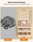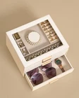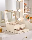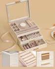 Jewelry Box for Women, Glass Lid Jewelry Organizer Box with 2 Drawers for Earrings Necklaces Rings Bracelets, Modern Style, Jewelry Storage, Birthday Christmas Gifts for Women, Cloud White Product Details Size: 3-Layer Brand: Selenvia MPN: JR01W UPC: Does not apply EAN: Does not apply Color: White Brand: Selenvia Material: Leather Style: Modern Special Feature: Removable, 2 Drawers, Dustproof, Adjustable Recommended Uses For Product: Necklace, Bracelet, Ring, Jewelry Storage, Watch, Earring, Bangle Product Dimensions: 7.9"D x 9.5"W x 5.3"H Shape: Rectangular Occasion: Mother's Day, Christmas, Anniversary, Birthday, Valentine's Day Mounting Type: Table Top Brand Name: Selenvia Manufacturer: Selenvia Material Type: Leather Inner Material: Glass Item Dimensions D x W x H: 7.9"D x 9.5"W x 5.3"H Shape: Rectangular Color: White Occasion: Mother's Day, Christmas, Anniversary, Birthday, Valentine's Day Style Name: Modern Number of Items: 1 Jewelry Storage Type: Jewelry Box Number of Compartments: 3 Mounting Type: Table Top Number of Drawers: 2 Spacious Storage Capacity with Adjustable Dividers: The interior of the box offers ample space to accommodate a wide variety of jewelry. With adjustable dividers, you can customize the compartments according to your needs.It's not just for rings, necklaces, and bracelets; it can also comfortably accommodate sunglasses, watches, and other accessories, making it a versatile storage solution for all your precious items. Material and Quality: Crafted from premium leather, this jewelry box is built to last. The glass lid is thick and sturdy, providing clear visibility and protection. The interior is lined with a soft fabric to prevent scratches on your precious jewelry. The construction of the box is solid, with quality handles and drawers that open and close smoothly. Elegant Glass Lid Design: The glass lid of this jewelry box not only adds a touch of elegance but also allows you to display your favorite jewelry pieces. You can easily see and admire your beautiful necklaces, bracelets, and other accessories without having to open the box. It's like having a mini jewelry showcase right on your dresser. Modern and Stylish Cloud White Leather: The cloud - white leather gives this jewelry box a modern and luxurious look. The leather not only looks great but is also durable and easy to clean. It will blend seamlessly with any modern home decor, adding a touch of sophistication to your bedroom or dressing area. Ideal Gift Choice: This jewelry box is an excellent gift option for various occasions. Whether it's a birthday, anniversary, Valentine's Day, Christmas, or any other special event, it is sure to impress. The elegant design and practical functionality make it a thoughtful and valuable present for friends, family, or loved ones.