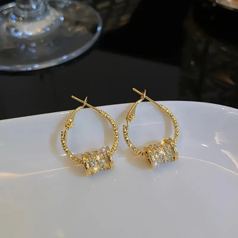 Golden Hoop Earrings Sparkling Zircon Decor Elegant Zinc Alloy Jewelry Women